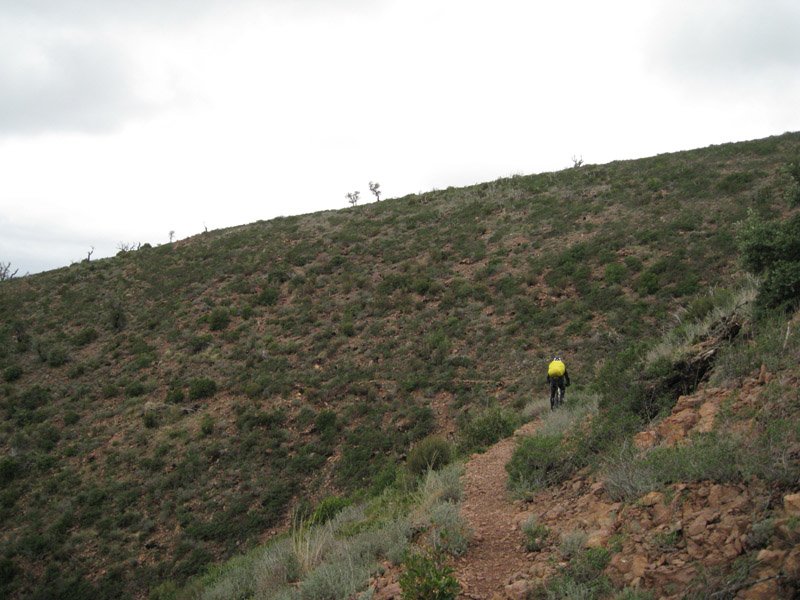 Der Heutige Tag war in Bezug auf das Wetter alles andere als hammermässig. Als wir um 6.30 Uhr aufstehen wollten goss es in strömen. Also strichen wir die erste Trailpartie. Wir wollten ursprünglich den Aqueduc du Foulon ausprobieren wo auch der GR51 entlang führte. Also legten wir uns nochmals eine Runde zum schlafen hin. Um 8.30Uhr leisteten wir uns dann noch das eher magere Hotelfrühstück und brachen um 9.30Uhr auf. Immerhin hat der Regen nachgelassen. Wir folgten ein Stück der Landstrasse und kehrten dann bei Pont du Loup wieder auf das ehemalige Bahntrasse zurück, auf welchem wir direkt ins Zentrum von Grasse gelangten. Dann folgten wir wieder der ursprünglich geplanten Route. Um die Mittagszeit haben wir dann das Massif de l' Esterel erreicht. Nach einer kurzen Kraftstoffaufnahme ging es dann auf teilweise hammermässig Tollen Trails nach St. Raphaël. Der dritte Teil des Heutigen Tages führte uns dann noch durch das Massif des Maures bis nach La Garde Freinet. Etwa 1 Stunde fuhren wir dann noch im dunkeln. Wir beide hatten neue LED Leuchten dabei, die nun ihren guten Dienst leisteten und dise Nacht fast zum Tag machten.