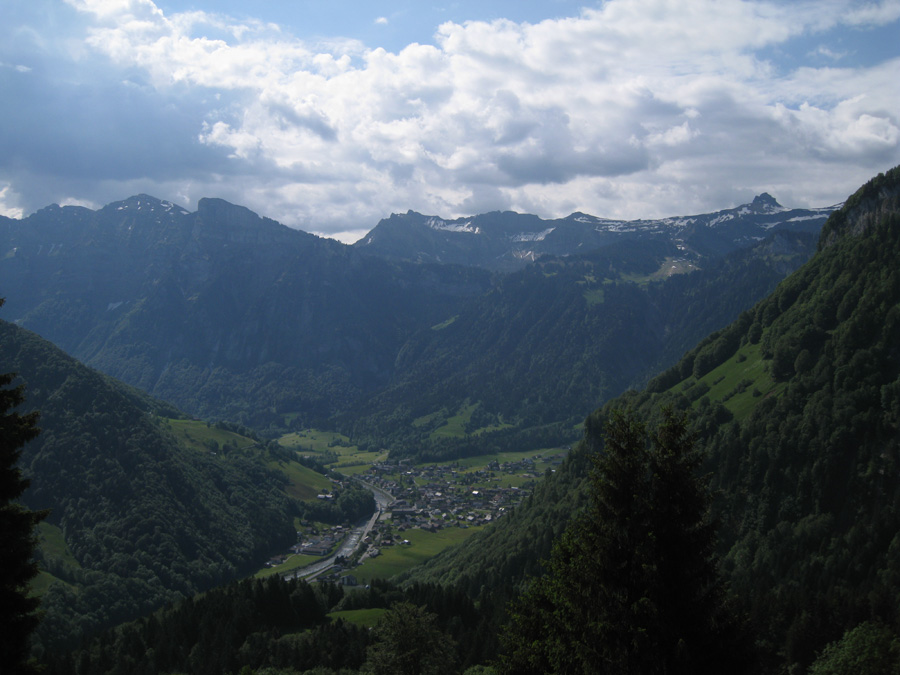 Ausblick unterhalb des Schnellvorsässes auf Mellau und die Kanisfluh