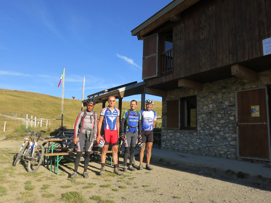 gemeinsames Foto vor dem Rifugio Barbera vor dem Start zur letzten Etappe, mit