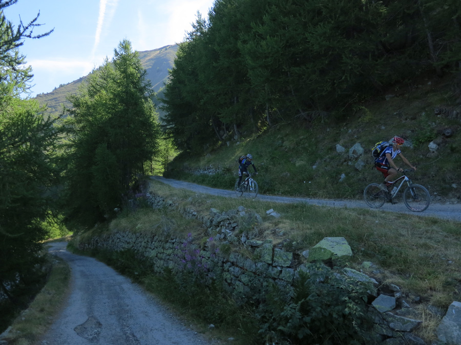 bis Zum Rifugio Grai. Der erdige feine Fahrweg verlief hier unmittelbar neben