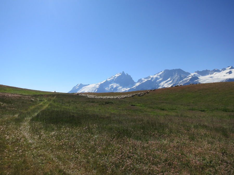in der Nähe des Chalets du Fay mit Ausblick auf den Pic de la Grave im