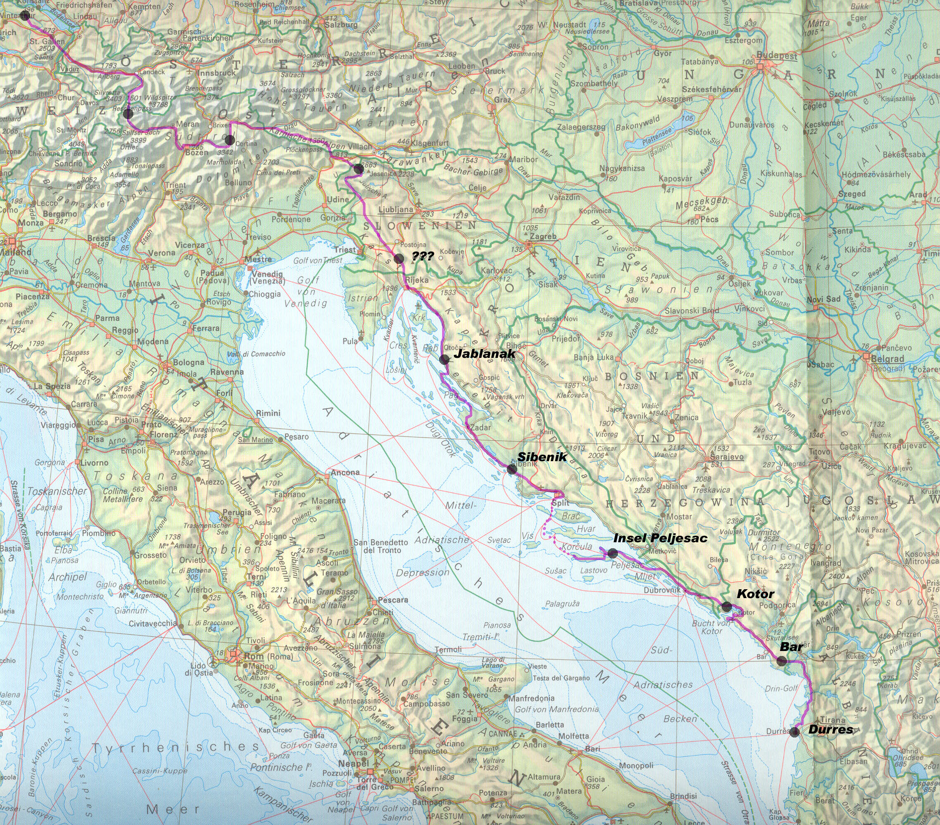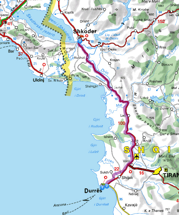1:Etappe Durres- Mushan- Muriqan- Bar- Budva ca 200km