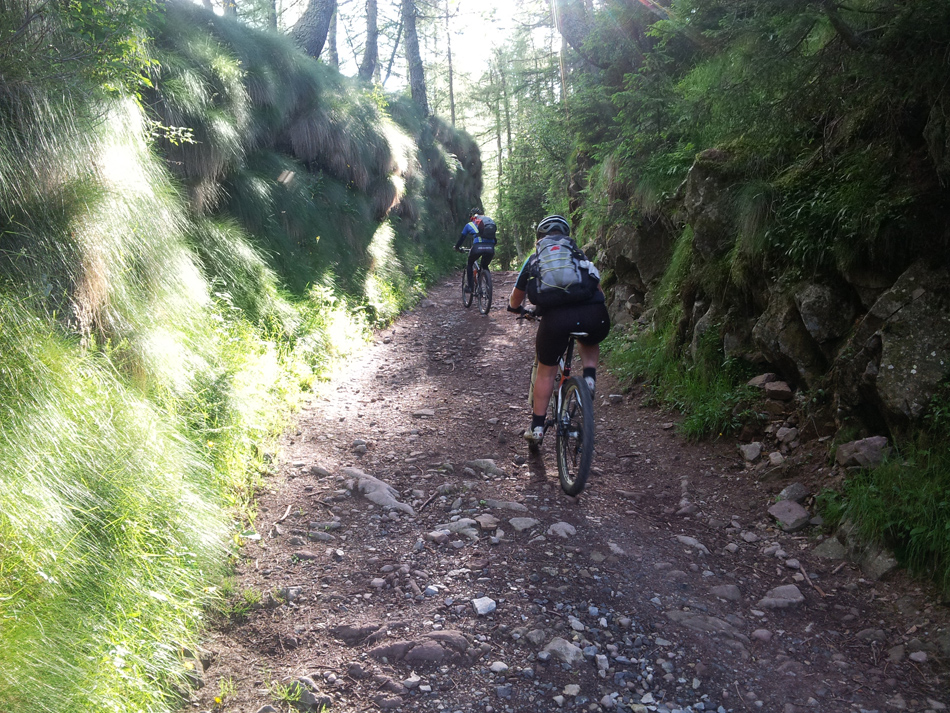 einer alten Millitärpiste zum Passo Bruffione. Die zum Teil schon mit Gras