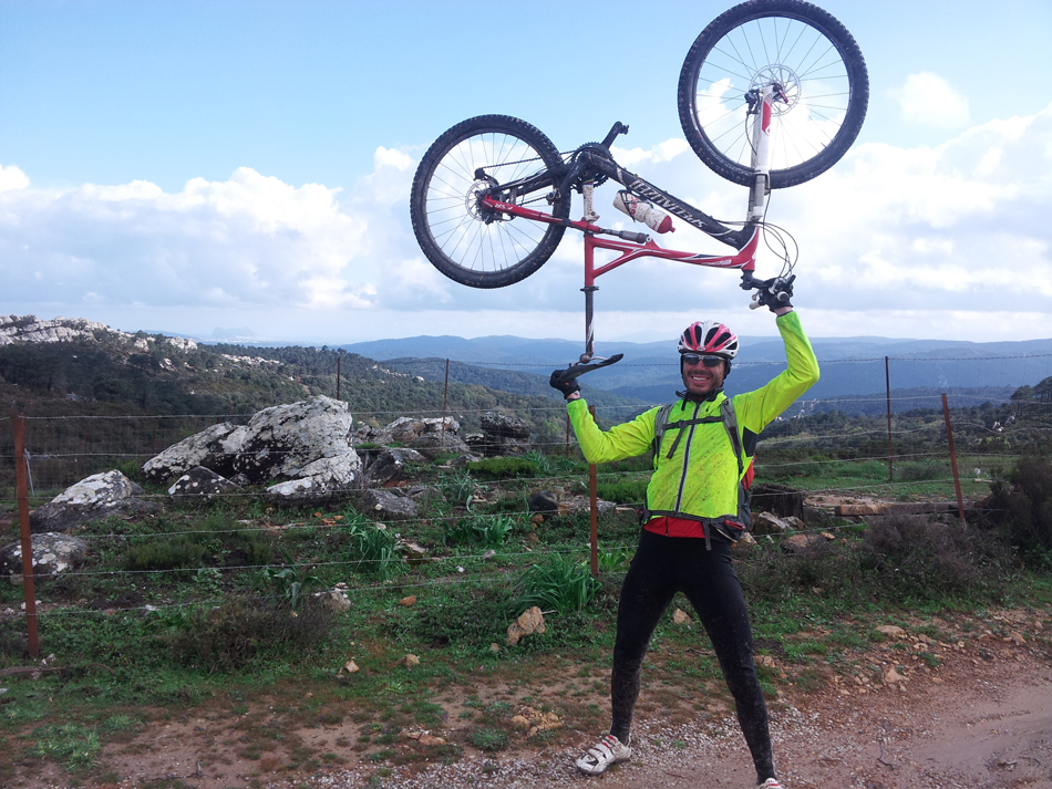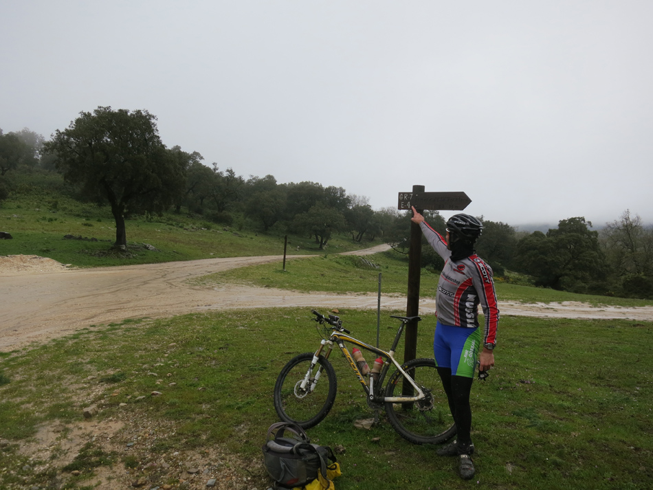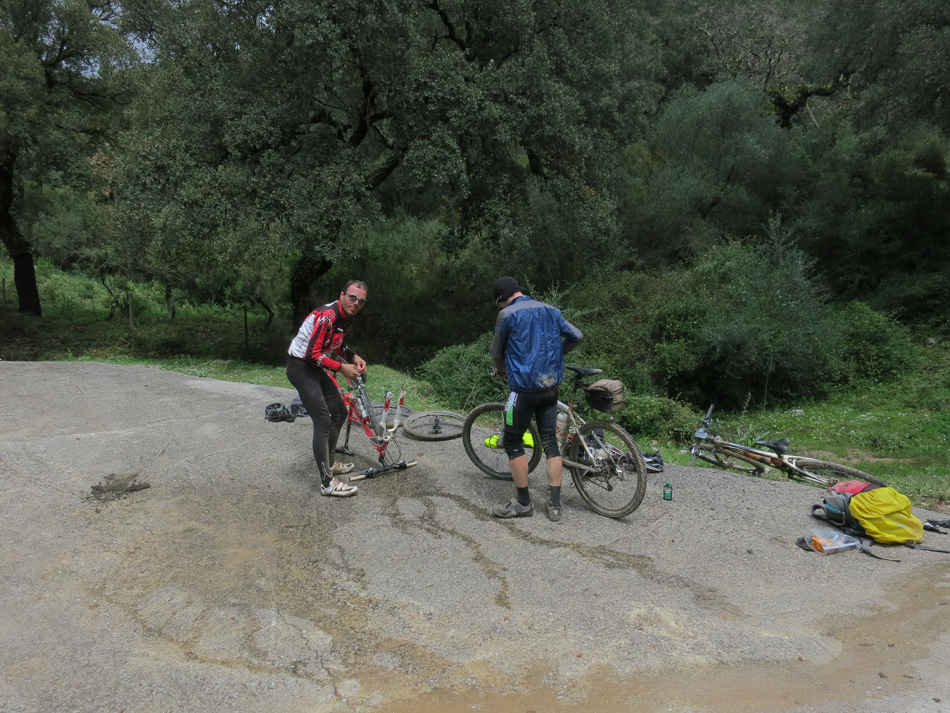 Bikeservice beim erreichen einer Aspahltstrasse nördlich von Jimena de la