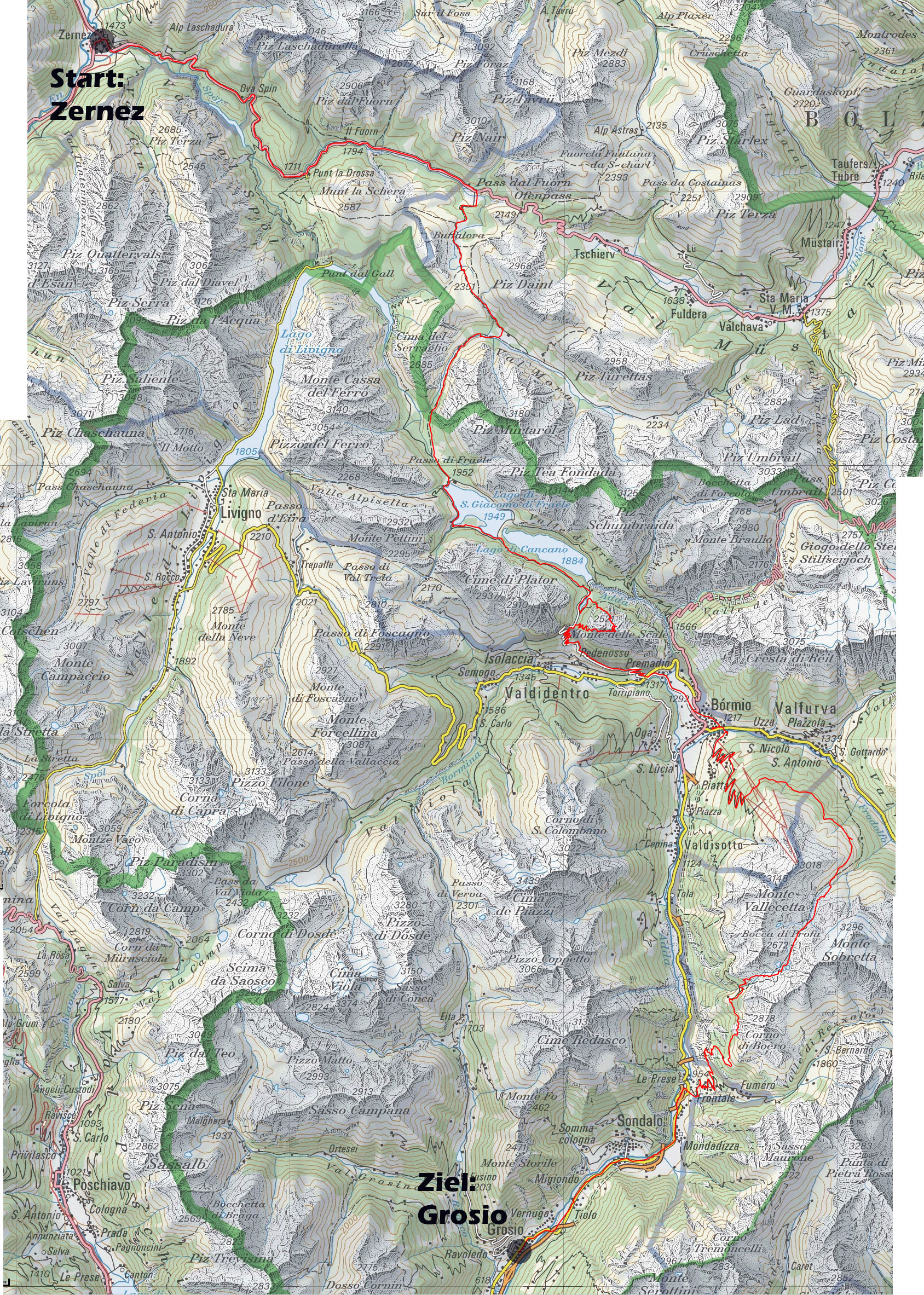 nach Bormio führt, einbiegen. Doch dieser Weg schien nicht mehr zu existieren und
