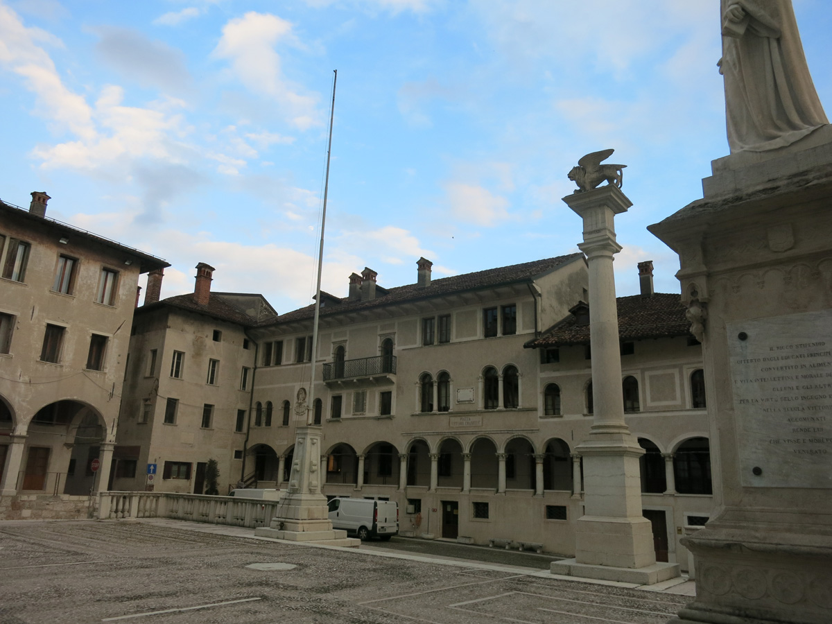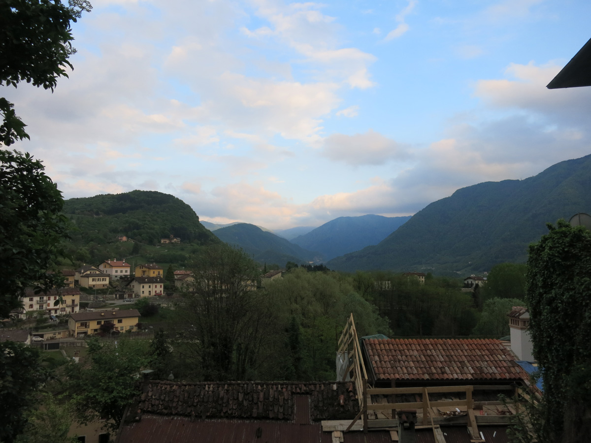 Heute Morgen gab es ein gutes Morgenessen im Rifugio Vallata. Danach ging es um 8.15Uhr los. Ich wählte meine ursprünglich geplante Route über Piancavallo und Vittorio Veneto. Meine Schwester nahm heute ihren eigenen Weg. Auf der Straße ging es etwa 90 min hinauf in die hässliche Retortensiedlung Piancavallo. Das Wetter war eher Trübe aber noch ohne nennenswerten Niederschlag. Meist auf Naturstrassen ging es dann mehr oder weniger auf der Höhe weiter zum Rifugio Citta di Vittorio Veneto. Um 12.30 Uhr stand ich dann vor der verschlossenen Hütte auf 1540m. Nun folgte eine teilweise Knackige aber sehr schöne Trailabfahrt nach Vittorio Veneto. Hier gab es dann nochmals einen größeren Aufstieg zum Monte Cimone auf 1280m. Auf einem Trail ging es dann von dort auf der anderen Seite nach Sant' Antonio di Tortal hinunter. Leider ließ ich es etwas zu sehr krachen, so dass 2 Speichen zu Bruch gingen. Ich entschloss mich dann auf der Strasse schnellst möglich nach Feltre zu fahren, wo ich dann um 18.30Uhr noch einen Velohändler fand. Danach besichtigten wir dann noch die Altstadt und suchten das Hotel aus.