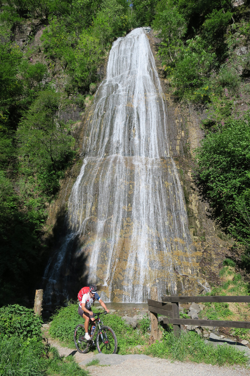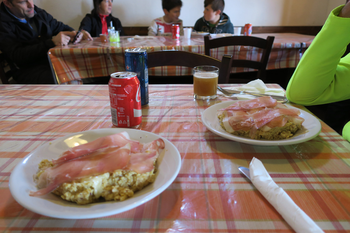 Heute Morgen bestellten wir im B&B das Morgenessen auf 7.30Uhr. Eine Stunde später ging es dann los. Auf einem abschnittsweise sehr schönen Trail ging es dann ins Valsassina hinunter. Etwas oberhalb von Barzio begann dann der zum Teil extrem steile Aufstieg ins Skigebiet Pian di Bobbio. Für uns war aber mit gewissem Kraftaufwand noch alles fahrbar. Oben im Skigebiet auf 1650m suchten wir dann die erst beste Bar auf. Die Abfahrt ins Valtorto führte dann meist über den Asphalt. Etwa zur Mittagszeit begann dann in San Martino der 2-te Aufstieg des heutigen Tages zum 1820m hohen Passo Branchina. Bis auf 1600m war alles auf Asphalt. Danach folgte ein ein etwa zu 60% fahrbarer Trail zur Passhöhe. Nach einer kurzen Trailabfahrt zum kleinen Bergsee kehrten wir dort in eine der wenigen Hütten in der Region ein. Es gab Polenta mit Käse....Hauptsache was zu Essen nach knapp 3000hm ohne Nahrung. Gestärkt ging es dann auf anspruchsvoller Holperpiste ins Valcanale und dann auf einem tollen Höhenweg nach Ardesio. Um ca. 17.15 Uhr erreichten wir dann die größere sehr schöne Ortschaft Clusone. Hier entschieden wir uns noch den 1308m hohen Il Forcellino Pass anzuhängen. Der Trail war anscheinend, obwohl verboten, oft von Motorrädern befahren. Zum Biken war der Boden auf den Letzten 250hm meist zu lose und zu steil. Um 19.45 war dann auch diese Passhöhe auf 1308m geschafft. Der obere Teil der Abfahrt war sehr steil und weiter unten gab es Kopfsteinpisten, die von dem kurz vor uns durchziehenden Gewitter noch Nass waren. Um 20.30 Uhr erreichten wir in Lovere dann den Lago d' Iseo und suchten dann das erst beste Hotel auf. Wettertechnisch hatten wir heute Glück. Über den ganzen Tag war es sonnig und kurz nachdem wir das Hotel erreicht hatten ging ein heftiges Gewitter mit Hagel nieder.