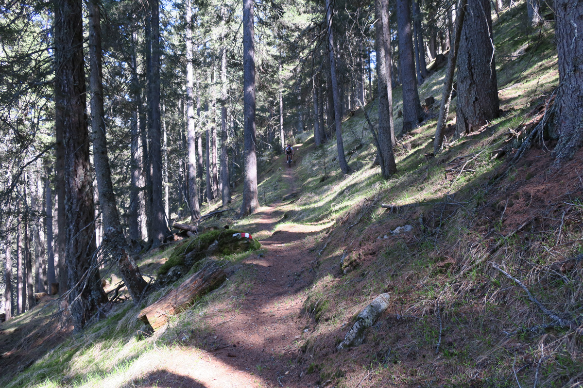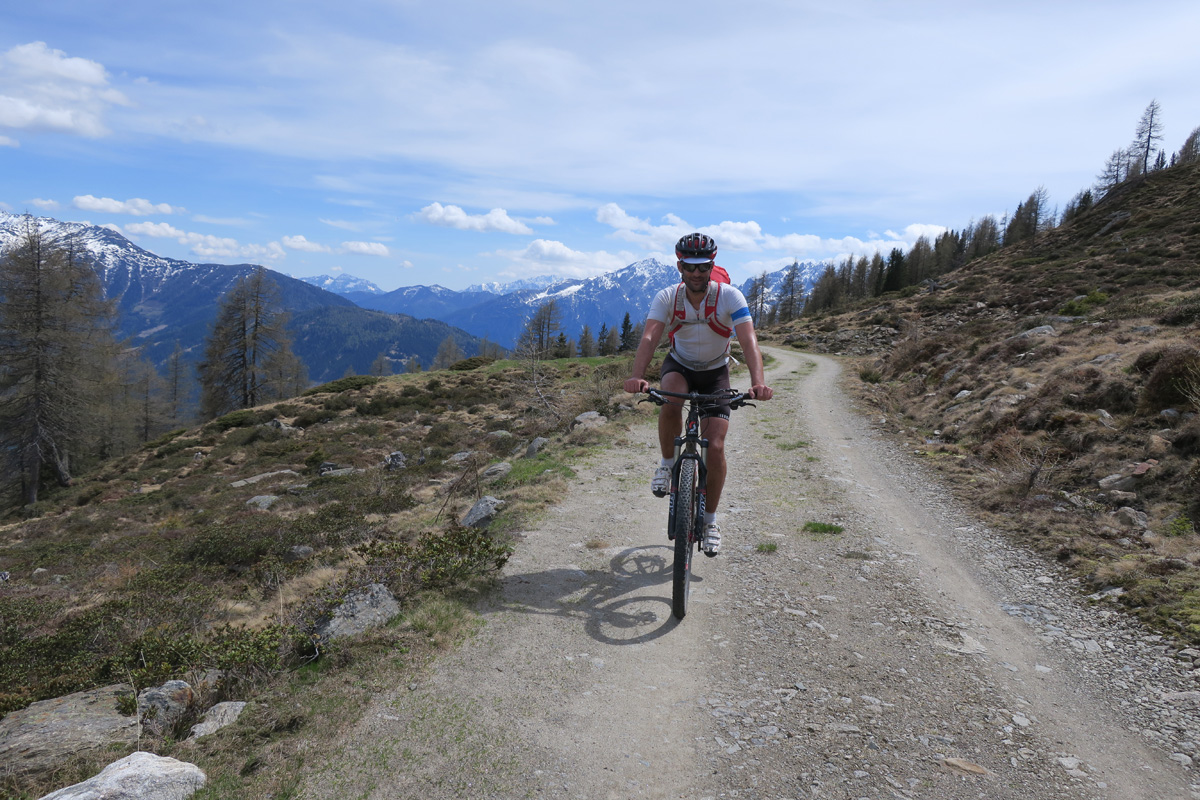 Heute Morgen gab es um 7.30Uhr ein gutes Tiroler Frühstücksbüffet. Danach radelten wir auf der Höhenstrasse am Vierschachberg weiter nach Winnebach. Hier an der Staatsgrenze Südtirol/Osttirol folgten wir dann in hohem Tempo dem Radweg talabwärts nach Lienz. Nach dem Einkauf von Notvorräten nahmen wir den Aufstieg durch das Debanttal zur Oberen Göricheralm in Angriff. Er führte über eine gut fahrbare relativ neue Forststrasse. Die Trailpartie von der Göricheralm zur Moseralm war nicht ganz durchgehend fahrbar. Ca. 5min laufen. Gegen 14 Uhr kehrten wir dann in der sehr guten Alpwirtschaft Roaner Almhütte ein. Gestärkt ging es dann zur Winkler Viehalm, wo dann der Höhenweg zur Pichleralm begann. Dieser auf einer Höhe von gut 2000m ü M verlaufende Wanderweg war zwar stellenweise recht ruppig, aber für mich durchgehend fahrbar. Die Aussicht ins Mölltal und in die Lienzer Dolomiten war prächtig. Nicht ganz so gut fahrbar war dann der Jägersteig ins Wangenitztal. Aber mehr als 10 min mussten wir auch hier nicht laufen. Bei Döllach hatten wir dann wieder den Talgrund erreicht und nahmen wo vorhanden den Radweg nach Heiligenblut hinauf. Um 18Uhr tranken wir dort in einer Bar noch schnell ein Cola. Nun standen noch die Letzten 1000Höhenmeter zum Wallackhaus an. Den ersten Teil konnten wir auf der alten, nur teilweise asphaltierten Glocknerstrasse machen. Die zweite Hälfte dann auf der kaum mehr befahrenen Hauptstraße. Kurz vor 20Uhr hatten wir dann das Wallackhaus, unser Tagesziel auf 2300m erreicht. Unser Zimmer war top modern und außerordentlich gross. Das Abendessen war sehr gut.....