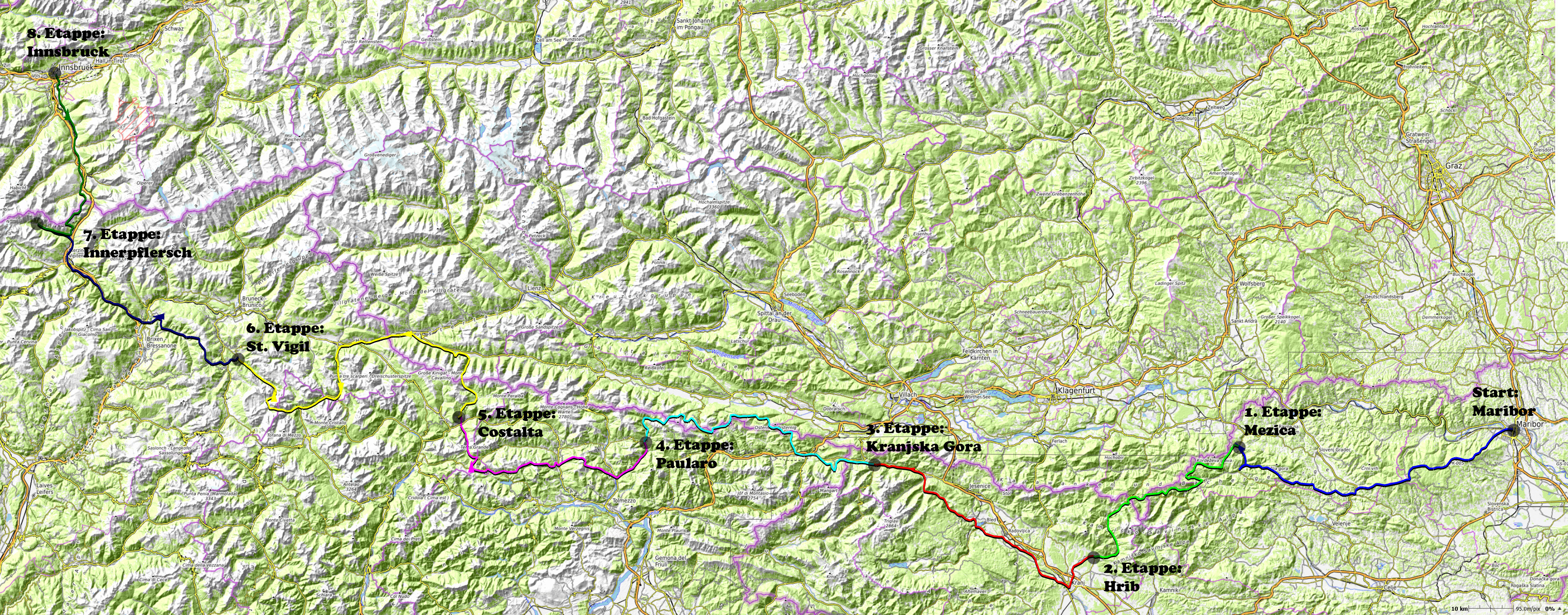 Biketour Maribor- Innsbruck 805km, 22'437hm 20. bis 27. Mai 2018