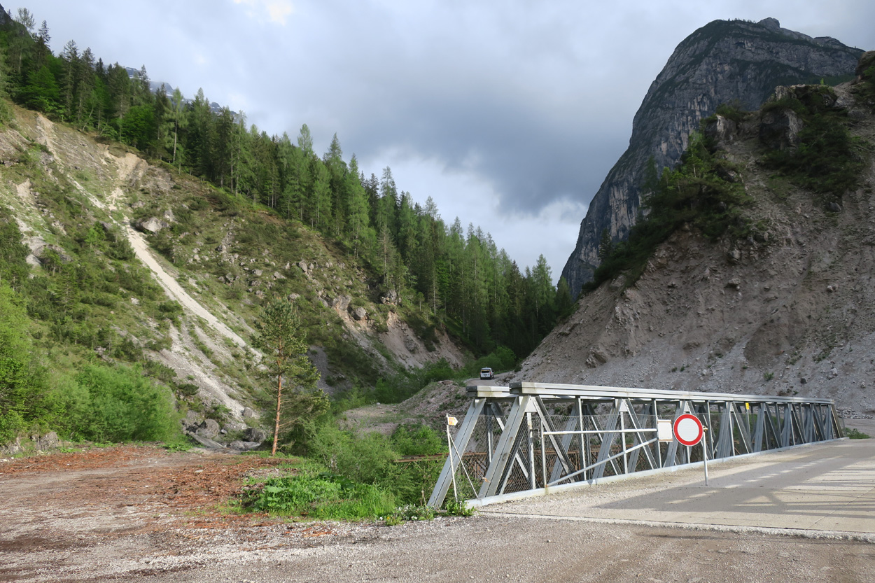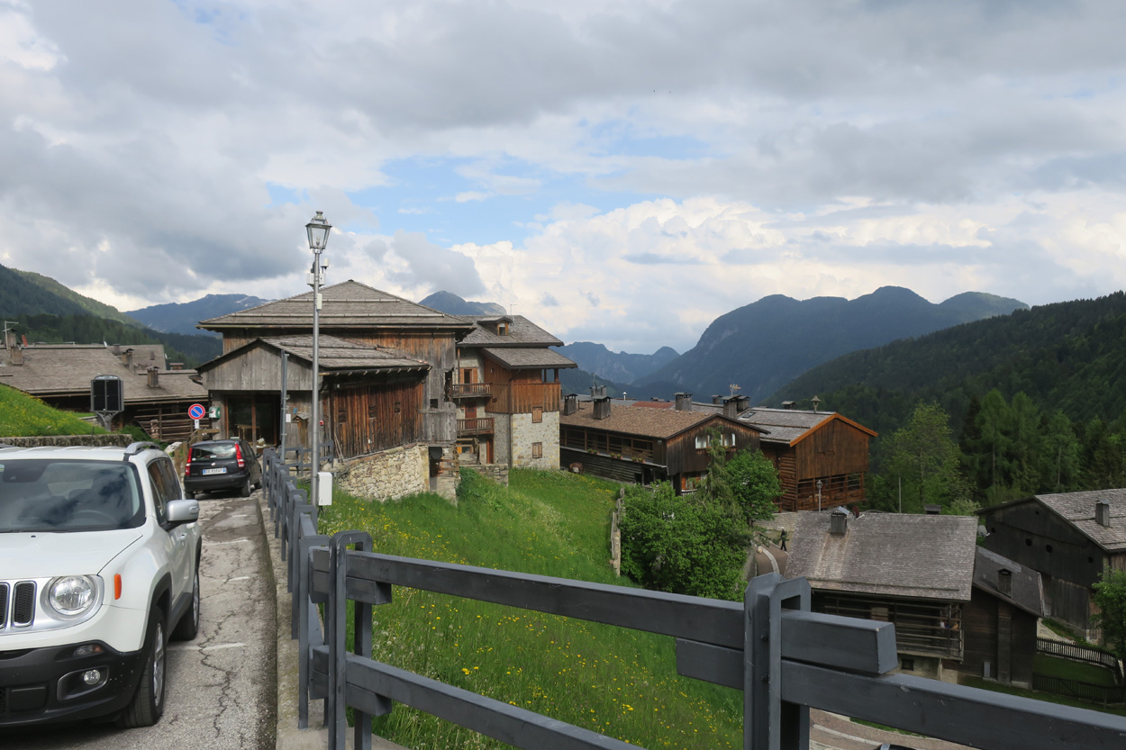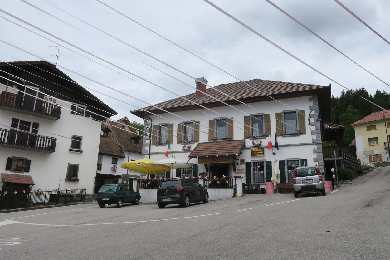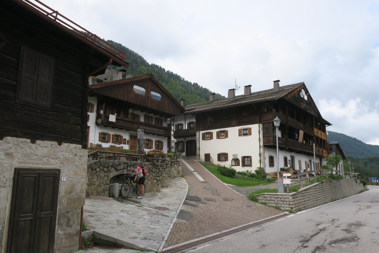 Heute Morgen gab es um 7Uhr das Morgenessen. Danach musste ich eine Schraube organisieren um den Schalthebel wieder am Bike zu befestigen. In einer kleinen Haushalt und Eisenwarenhandlung fand ich dann nach längerem Suchen und Probieren eine halbwegs passende Schraube. Danach ging es Talauswärts nach Zuglio. Dort begann dann der Aufstieg auf einer Straße und später auf einer steilen Piste zum Monte Zocolan. Um 12Uhr erreichten wir dann den auf 1750m Liegenden Berg. Hier oben war letzten Samstag auch das Etappenziel des Giro d' Italia. Mit Glühenden Bremsen ging es dann auf dessen Aufstiegsroute hinunter nach Liaris. Im gemütlichen Dorfrestaurant in Liaris kehrten wir dann für das Mittagessen ein. Danach ging es noch hinunter in den Talgrund nach Ovaro. Hier Begann dann der Aufstieg zum Passo della Forcella. Ab der Ortschaft Mione war dann das Asphaltsträsschen ultimativ steil. Es waren gut 1000Höhenmeter auf 6km zu überwinden. Gemäss den Schildern hatte es 28% steile Stellen. Teilweise hatte ich jedoch das Gefühl dass es noch steiler war. Ab dem Passo della Forcella gab es dann eine panoramareiche Naturstrasse durch die Wildnis nach Sauris. Im absolut sehenswerten Sauris kehrten wir dann noch um 16.40Uhr für einen Dessert kurz ein. Sauris hat viele Schöne Holzhäuser im Österreicher Stil. Danach ging es noch auf der Straße zum Sella di Razzo hinauf. Ein Schild wo "Strada Chiusa" draufstand irritierte uns dann etwas, weil wir etliche Abrissstellen in der Landschaft sahen. Wir hatten aber Glück. Die Straße war passierbar. Von der Forcella Lavardet ging es dann auf SS465 hinunter nach Campolongo. Diese "Nationalstrasse" war aber für den Verkehr gesperrt und nur etwa zu einem drittel Asphaltiert und führte durch die wilde Dolomitenlandschaft. Um 18.50Uhr war dann Campolongo erreicht. Im der 350hm höher liegenden Ortschaft Costalta fanden wir dann auch eine tolle Unterkunft.