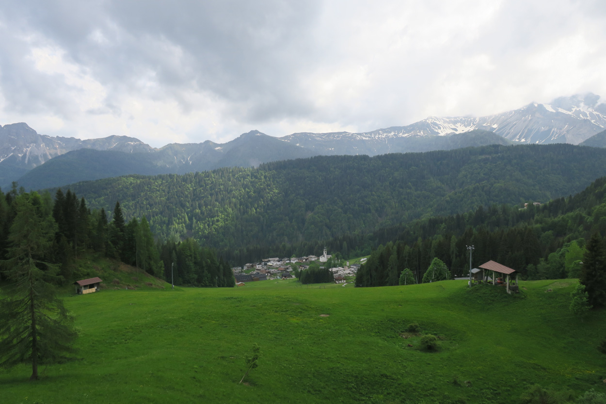 Abfahrt vom Sella di Ranzo nach Campolongo, Blick auf Costalta im Hintergrund