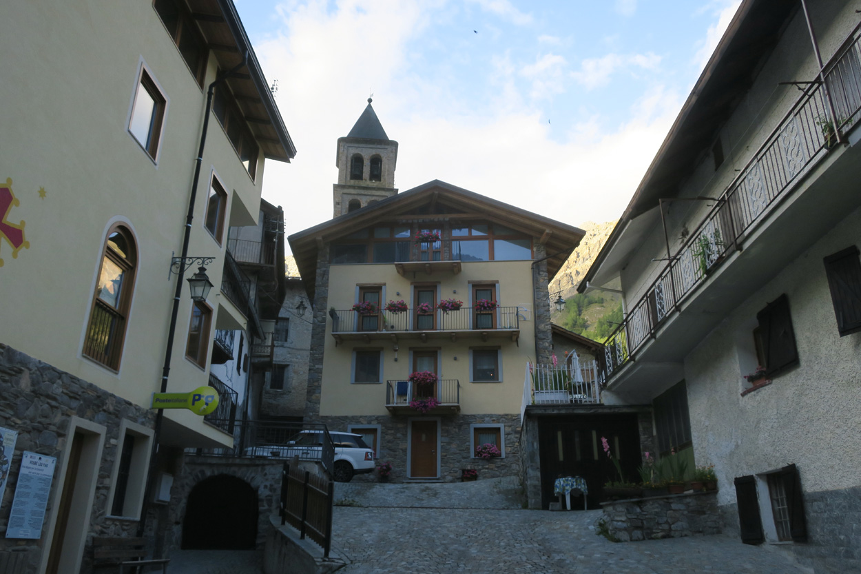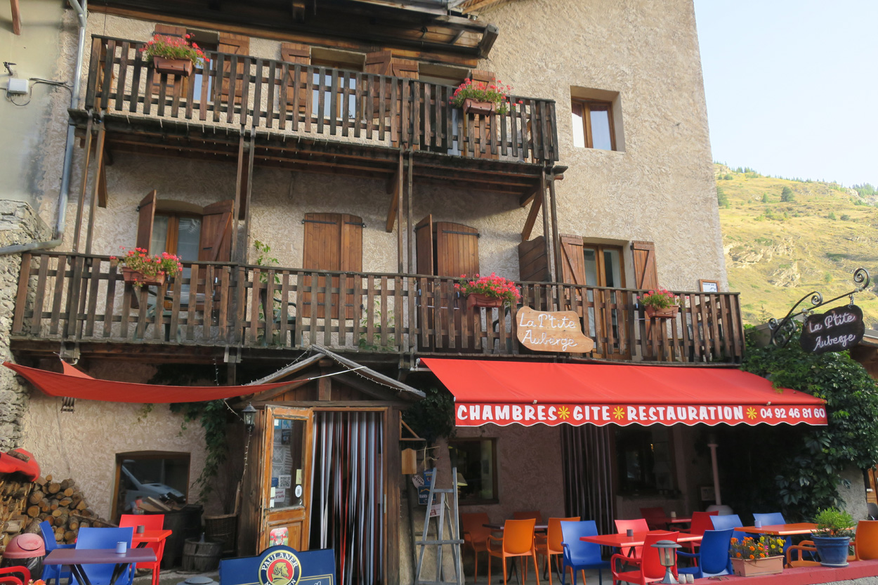 Heute Morgen gab es um 7.30Uhr ein einfaches Frühstücksbüffet. Etwa um 8.30Uhr startete ich dann. Zuerst ging es auf einer Bikeroute nach Prats Haute. Dort gab es dann einen schönen Wasserkanalweg nach Pierre Große. Von da gab es eine praktisch verkehrsfreie Straße nach Saint Veran. Von Saint Veran gab es dann noch bis auf 2500m ü M bei der Refuge de la Blanche eine Fahrstraße. Von hier aus musste ich dann etwa 40min bis zum 2955m hohen Col de la Noire Laufen. Genau um 12.00Uhr hatte ich dann diesen Pass und somit auch den höchsten Punkt dieser Tour und dieses Jahres erreicht. Danach ging es zuerst hinunter zum Col du Longin. Danach folgte die lange Trailabfahrt durch das Ubaye Tal nach Maljasset. Bis auf ein Paar wenige und kurze Stellen war in dieser Abfahrt alles fahrbar. In Maljasset sichte ich dann um 13.15Uhr nach einer Verpflegungsmöglichkeit. So wie es aussah, war hier die Hochsaison schon vorüber. Immerhin bekam ich dann in der CAF Hütte eine Wurst Käse Platte. Danach ging es um 14Uhr talabwärts weiter bis zur Pont du Châtelet. Dort begann dann der Aufstieg über Fouillouse zum Col du Vallonet. Bis 2250m konnte ich hier fahren. Für die restlichen 250hm zum 2524m hohen Col du Vallonet musste ich dann noch ca. 30min Laufen. Während diesem Aufstieg gab es dann auch die ersten Regentropfen dieser Tour. Aber ich hatte Glück und wurde nicht wirklich fest nass. Nach diesem Pässli traversierte ich dann hinüber zur Festung les Barraquements de Vyraisse. Von dort aus ging es noch ein paar Meter weiter hinauf zum Col de Mallemort. Von diesem 2558m hohen Pass gab es dann einen tollen Biketrail hinunter nach Larche. In Lache war ich dann etwa um 17.30Uhr. Hier nahm ich dann die Bikeroute abseits der Straße um auf den Col de Larche zu kommen. Kurz nach 18 Uhr erreichte ich dann auf knapp 2000m die Staatsgrenze zu Italien. In der Abfahrt nach Sambucco nahm ich dann meist die nicht besonders stark befahrene Hauptstraße. Um 19Uhr kam ich dann in Sambucco an und nahm ein Zimmer im Bikehotel Albergo della Pace. Bevor das Nachtessen begann machte ich noch einen Bike Service. Das Nachtessen war sehr gut und sehr großzügig. Leider hatte ich mich dann doch ziemlich überessen. Ich kann dieses Hotel wirklich wärmstens weiterempfehlen. Für Mountainbiker hat es zudem eine gut eingerichtete Werkstatt. Auch die Zimmer sind top ausgestattet.