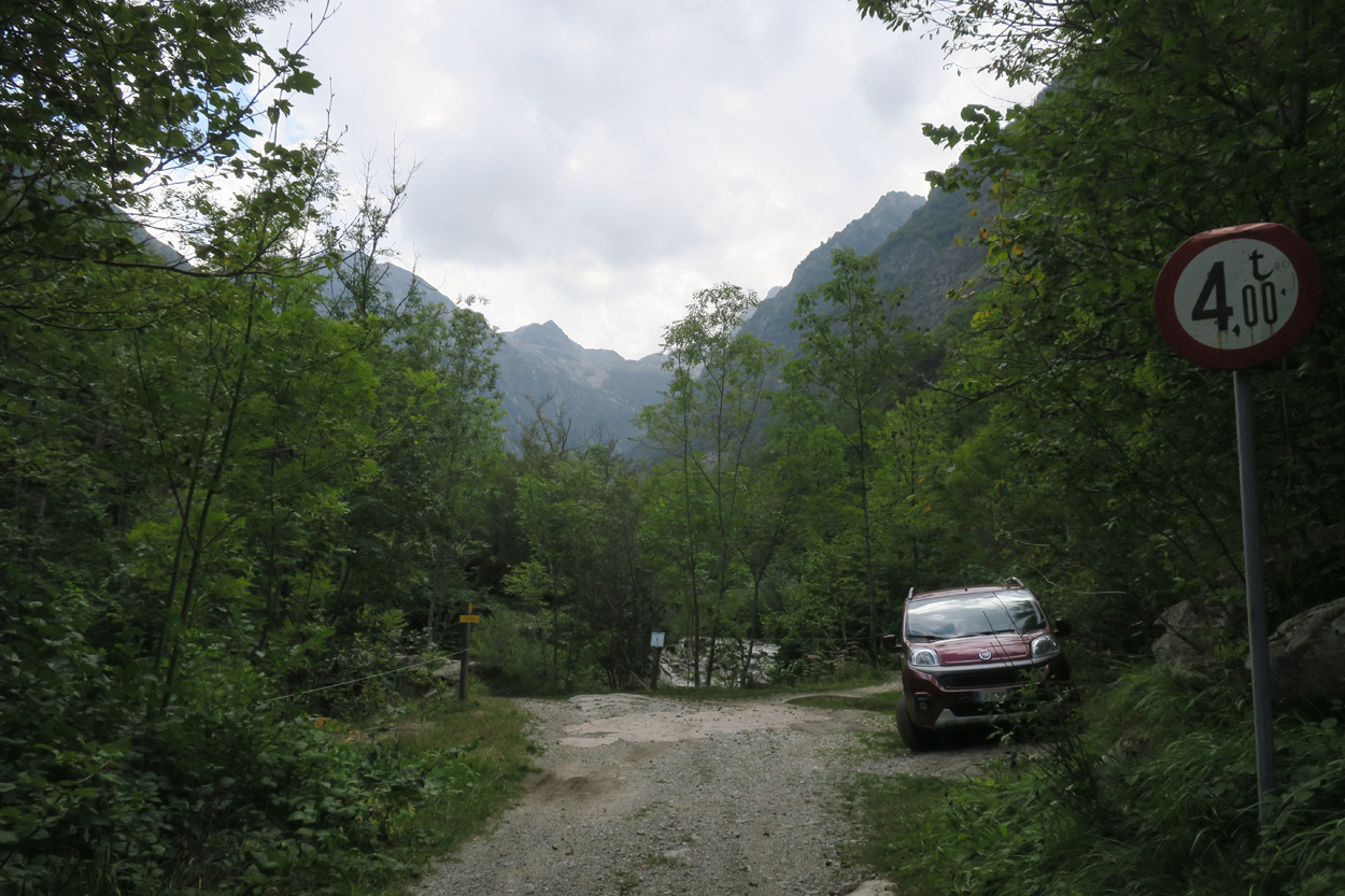 kurz vor dem Ende des Fahrweges im Vallone del Sabbione auf 1550m