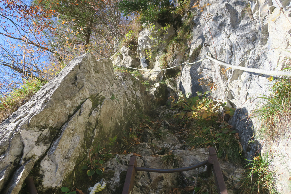 Anspruchsvolle Klettersteigpartie durch den Tritt auf die Zinglenflue