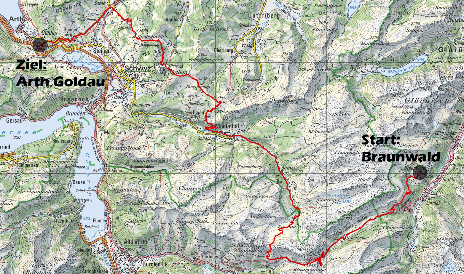 Braunwald- Rietalp Unterstafel- Burstegg- Urnerboden- Klausenpass- Vorder