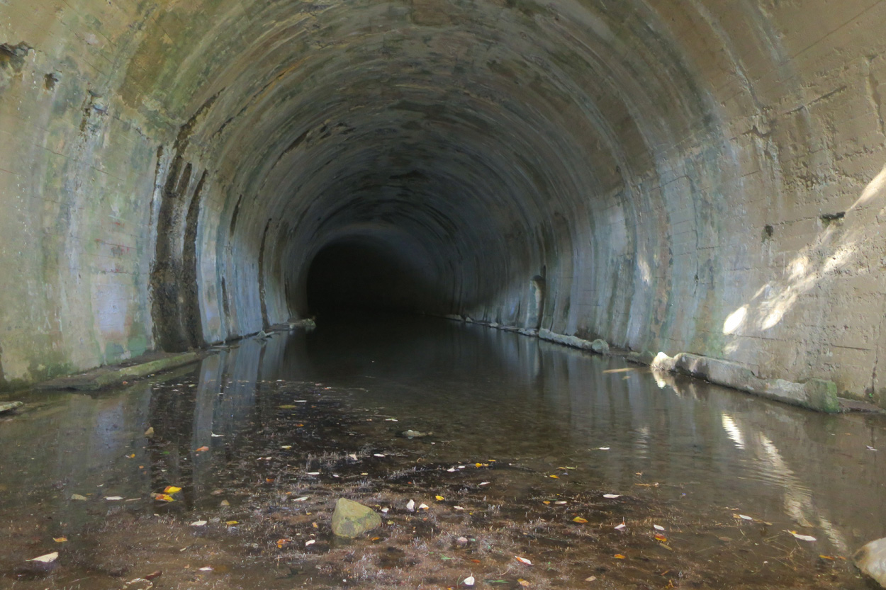 vom Seitenstollen in den Eisenbahntunnel