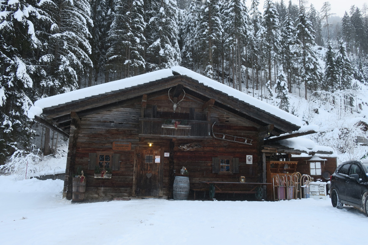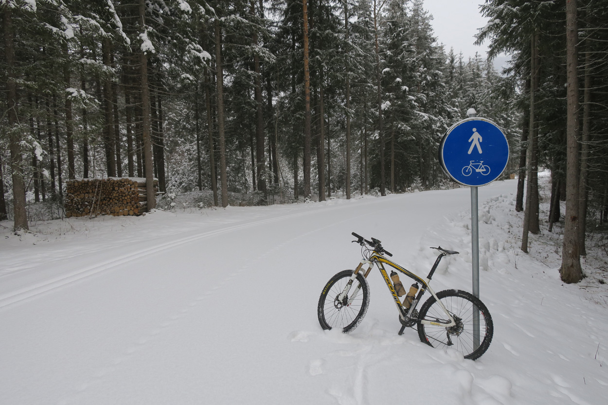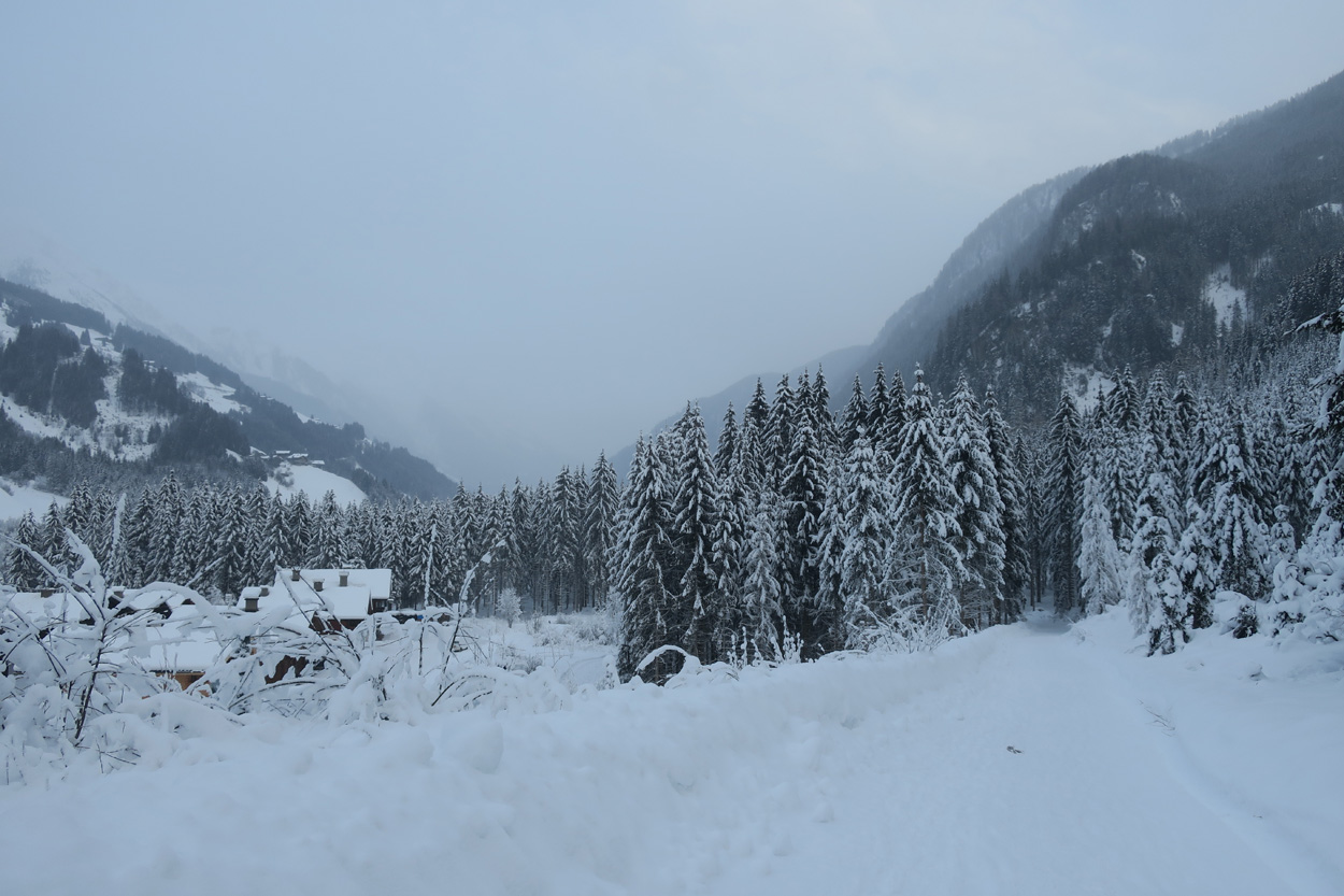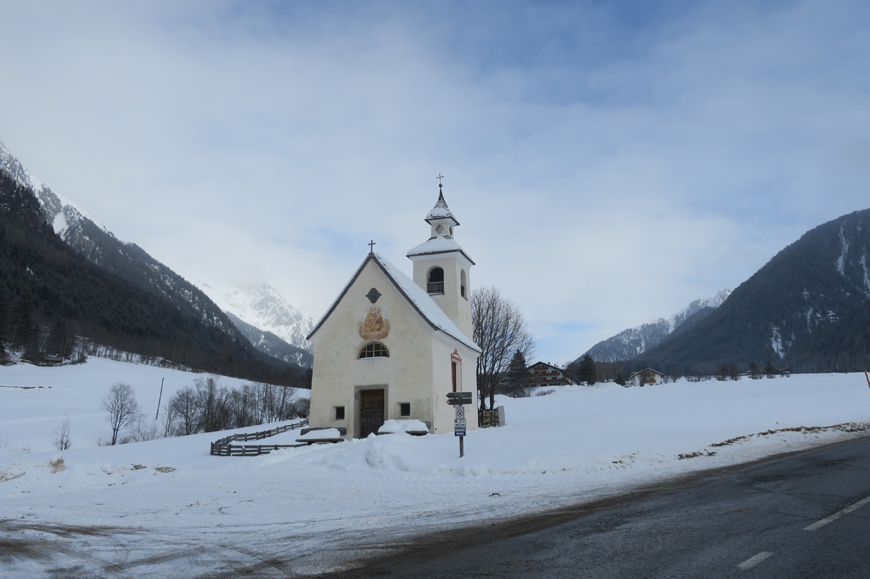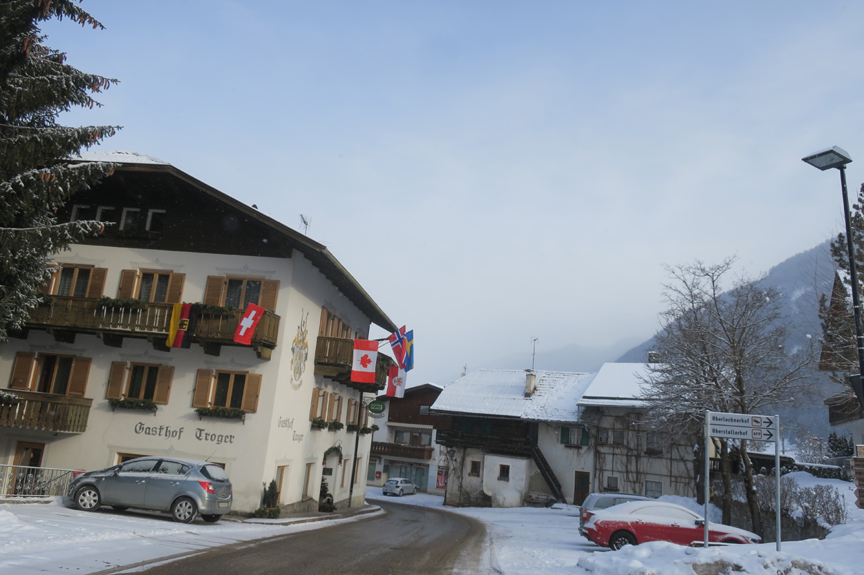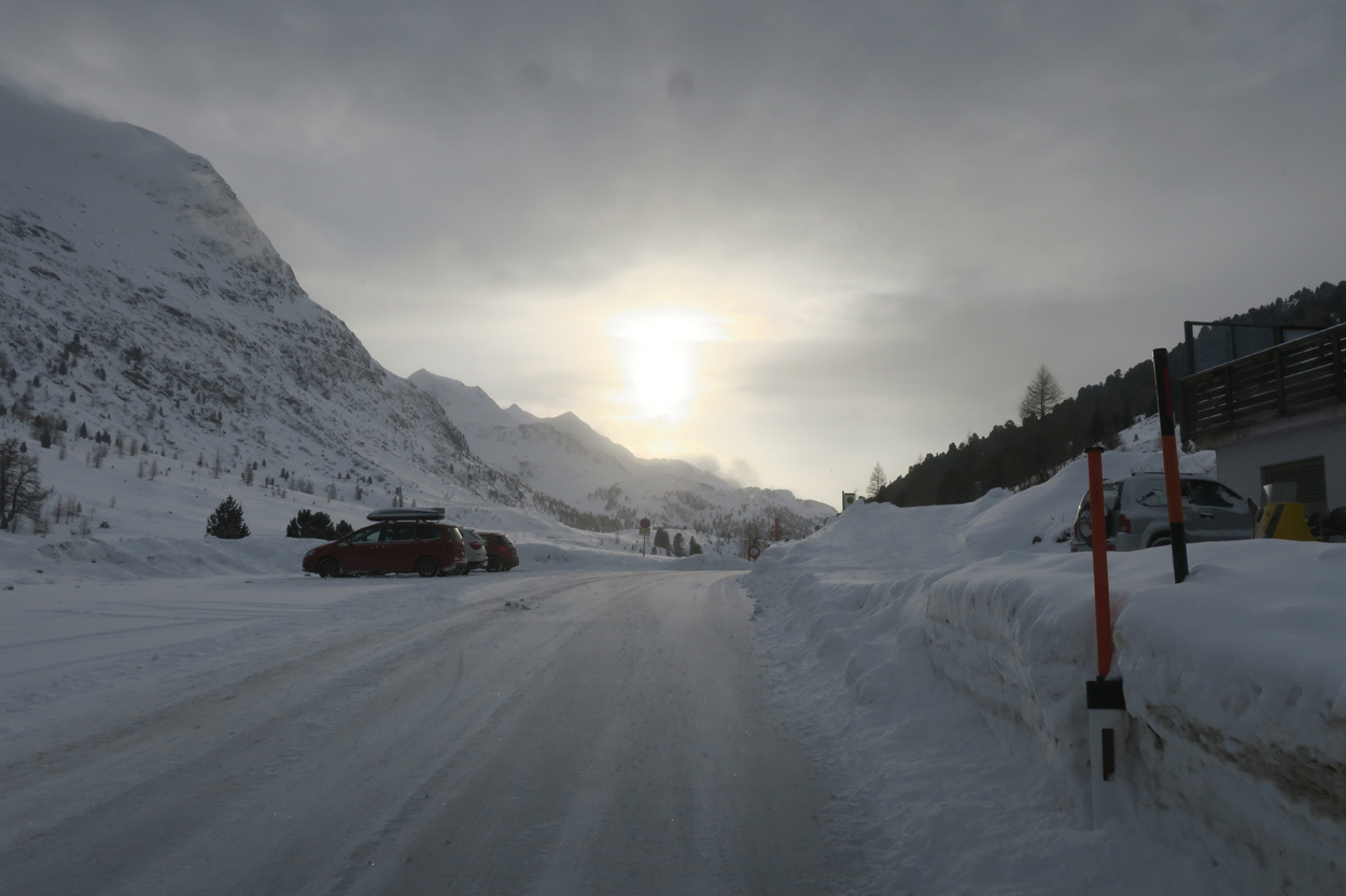Heute Morgen ging ich in 7.45Uhr ans Morgenessen. Leider hatte ich in der Nacht nicht allzu lange geschlafen, denn ich musste mir noch eine Route ausdenken.... Nach dem sehr guten Morgenessen startete ich dann um 8.30Uhr vor dem Hotel Hohe Gaisl auf knapp 2000m ü M. Zuerst ging es auf der mit Neuschnee bedeckten Strasse (ca. 5 bis 10cm Neuschnee) und dem Winterwanderweg in flottem Tempo hinunter zum Brückele. Die Dame an der Mautstelle Brückele staunte nicht schlecht als Sie mich sah und wünschte mir noch eine schöne Tour. Auf dem weiteren Weg nach Prags konnte ich dann eine Forststrasse nehmen wo zuvor grad eine Skitruppe des Italienischen Militär durchgewandert war. Von Prags nach Welsberg nahm ich dann den offiziellen Radweg. Es war als Loipe präpariert und hatte eine optimale Härte um darauf in hohem Tempo Fahren zu können. Das nächste Teilstück am Olanger Stausee entlang war dann mit einem Traktor grob geräumt worden. Danach ging es über die Staumauer zum Weiler Goste. Hier begann dann nun das Antholztal wo ich abwechslungsweise auf der Nebenstrasse und dem Winterwanderweg nach Antholz Niedertal fuhr. In Antholz Niedertal ist mir beim vorbeifahren noch ein professioneller Bikeshop aufgefallen. Um ca. 11Uhr war ich dann kurz vor Antholz Mittertal, als mir plötzlich der linke Kurbelarm brach. Ich kehrte um und ließ es 2km zurück zum Bike Geschäft rollen. Leider öffnete dieses erst um 13.30 Uhr. Auch per Telefon war niemand zu erreichen. Ich fragte dann im Lebensmittelladen nebenan ob man vielleicht eine Händy Nummer vom Bikeshop hat. Da bekam ich den Tip dass ich im Restaurant daneben fragen soll. Hier traf ich dann die Mountainbike Legende Roel Paulissen der mit einem Kollegen den Laden betreibt. Da meine XTR Kurbel schon sicher 10Jahre alt war und noch für 9Fach Übersetzung war, war es wie ein sechser im Lotto was passendes zu finden. Schlussendlich konnte er dann an einem alten Occasionsbike eine noch passende Kurbel ausbauen und bei mir wieder einbauen. Kurz nach 12Uhr konnte ich dann meinen Trip wieder fortsetzten. Für die rasche Reparatur war ich sehr sehr dankbar, denn ich wollte noch unbedingt den Stallersattel mal im Winter ausprobieren. Auf der Straße radelte ich dann hinauf zum Antholzersee. Dort war wegen eines Biathlon Weltcup gerade der Teufel los.... Nach der Überquerung des gefrorenen Anthohlzersees auf dem Winterwanderweg begann dann der Schlussaufstieg auf der Passtrasse welche als Schlittelpiste gepresst war. Ich merkte bald dass die Piste etwa 50cm vom Rad entfernt am härtesten war. Obwohl es auch hier einwenig Neuschnee (ca.5cm) gab, konnte ich dann bis zur Passhöhe auf 2052m alles fahrend bewältigen. Um 14.30Uhr überschritt ich dann die Staatsgrenze von Südtirol nach Österreich auf dem Pass. Auf dem gespurten Winterwanderweg erreichte ich dann um 14.45 Uhr das Alpengasthaus Obersee. Leider liess hier die Härte des Untergrundes etwas zu wünschen übrig. Im schönen Alpengasthaus konsumierte ich kurz eine Gulaschsuppe und überquerte danach den Obersee. Leider war hier der Weg wegen des Neuschnees zu weich um mit einem normalen Bike fahren zu können. Nach der Seeüberquerung ging es dann abwärts und somit reichte die Schneehärte um auf der Piste fahren zu können. Ab der Stalleralm auf 1968m war dann die Strasse gepfadet. Nun ging es noch das Defreggental bis nach Huben ins Tauerntal hinunter. Im Defreggental konnte ich noch ein paar ganz schöne Abschnitte auf harten Winterwanderwegen machen. Um 17.15 bei Einbruch der Dunkelheit erreichte ich dann Huben. Hier war dann gar nichts los. Auch die Restaurants waren geschlossen. Um 17.40 Uhr fuhr ich dann mit dem letzten Postbus des heutigen Tages durch den Tauerntunnel nach Mittersill im Pinzgau. Hier kam ich dann um 18.30Uhr am Bahnhof an und nahm dann gleich ein Zimmer im gegenüberliegenden Gasthaus Post. Die Chefin war sehr freundlich und bot mir sogar an die Kleider zu waschen.