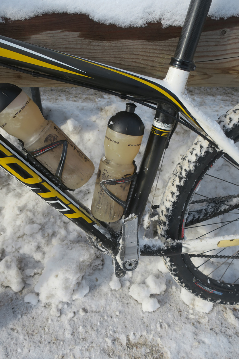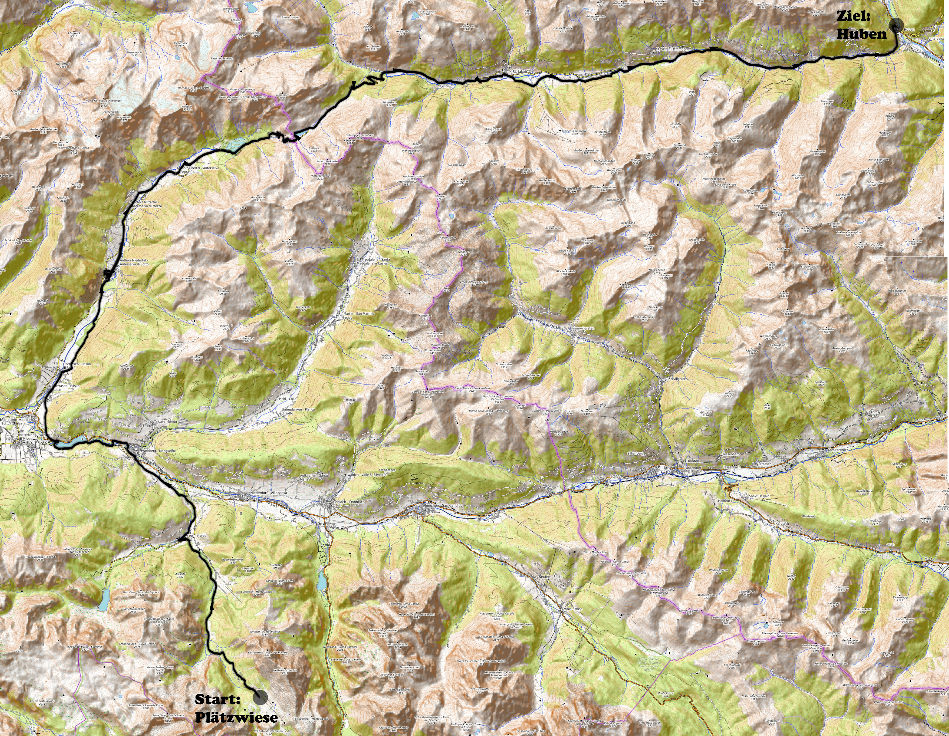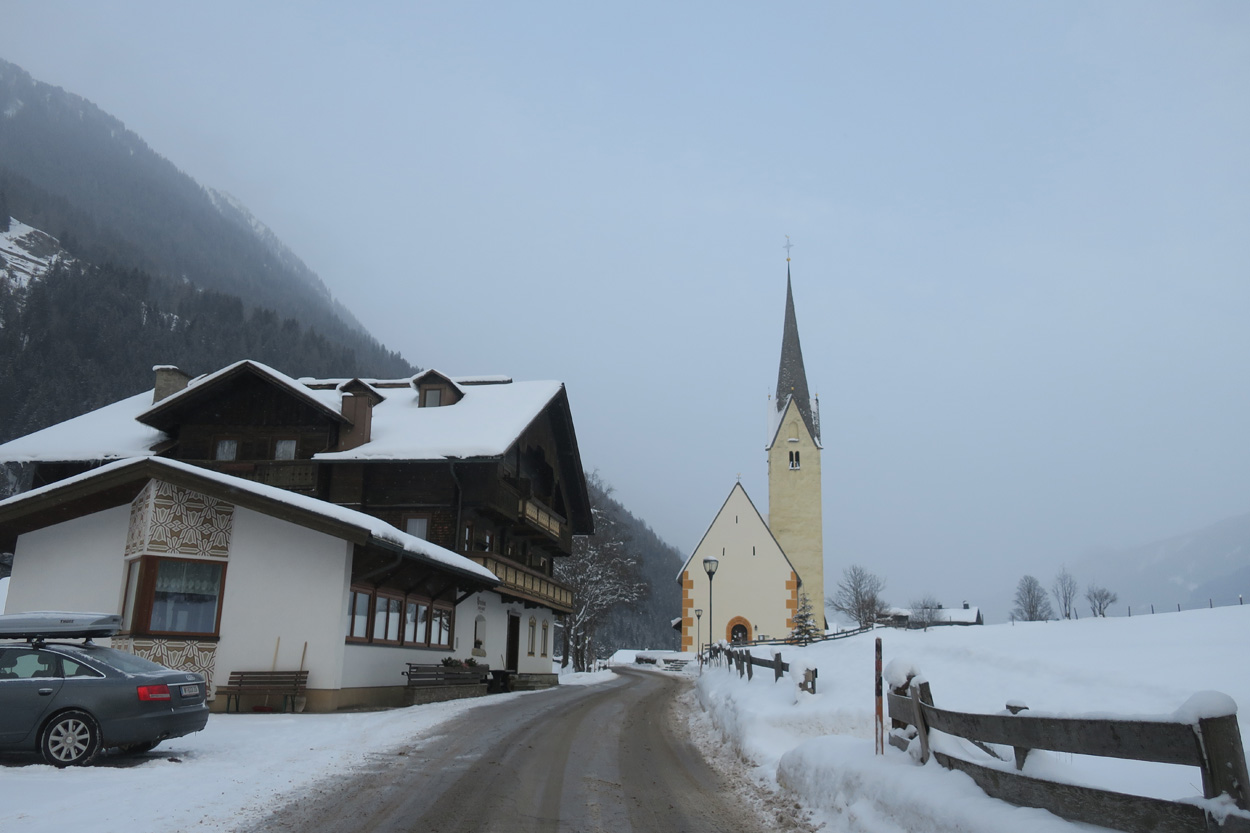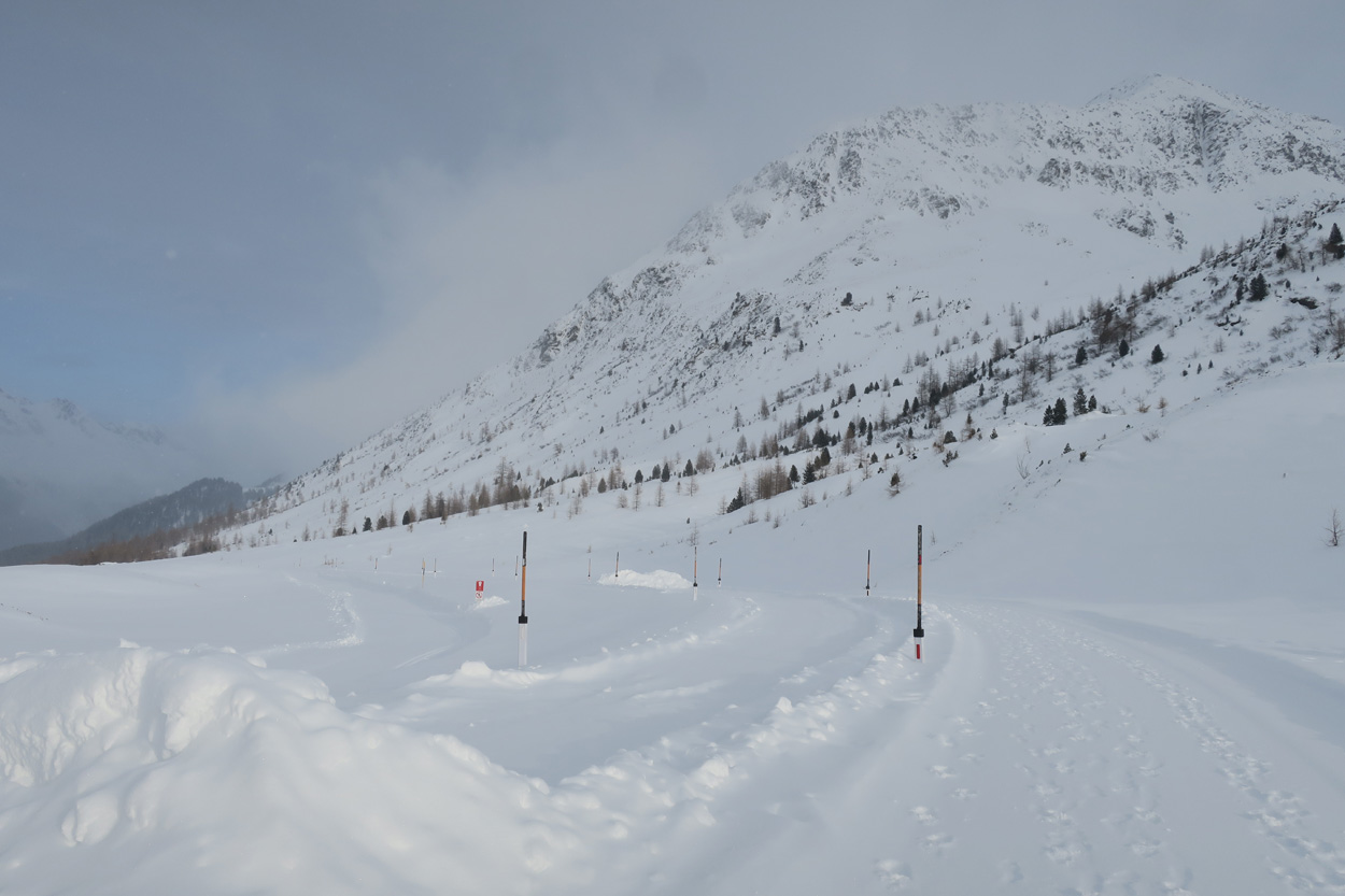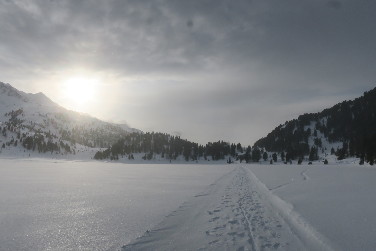 Heute Morgen ging ich in 7.45Uhr ans Morgenessen. Leider hatte ich in der Nacht nicht allzu lange geschlafen, denn ich musste mir noch eine Route ausdenken.... Nach dem sehr guten Morgenessen startete ich dann um 8.30Uhr vor dem Hotel Hohe Gaisl auf knapp 2000m ü M. Zuerst ging es auf der mit Neuschnee bedeckten Strasse (ca. 5 bis 10cm Neuschnee) und dem Winterwanderweg in flottem Tempo hinunter zum Brückele. Die Dame an der Mautstelle Brückele staunte nicht schlecht als Sie mich sah und wünschte mir noch eine schöne Tour. Auf dem weiteren Weg nach Prags konnte ich dann eine Forststrasse nehmen wo zuvor grad eine Skitruppe des Italienischen Militär durchgewandert war. Von Prags nach Welsberg nahm ich dann den offiziellen Radweg. Es war als Loipe präpariert und hatte eine optimale Härte um darauf in hohem Tempo Fahren zu können. Das nächste Teilstück am Olanger Stausee entlang war dann mit einem Traktor grob geräumt worden. Danach ging es über die Staumauer zum Weiler Goste. Hier begann dann nun das Antholztal wo ich abwechslungsweise auf der Nebenstrasse und dem Winterwanderweg nach Antholz Niedertal fuhr. In Antholz Niedertal ist mir beim vorbeifahren noch ein professioneller Bikeshop aufgefallen. Um ca. 11Uhr war ich dann kurz vor Antholz Mittertal, als mir plötzlich der linke Kurbelarm brach. Ich kehrte um und ließ es 2km zurück zum Bike Geschäft rollen. Leider öffnete dieses erst um 13.30 Uhr. Auch per Telefon war niemand zu erreichen. Ich fragte dann im Lebensmittelladen nebenan ob man vielleicht eine Händy Nummer vom Bikeshop hat. Da bekam ich den Tip dass ich im Restaurant daneben fragen soll. Hier traf ich dann die Mountainbike Legende Roel Paulissen der mit einem Kollegen den Laden betreibt. Da meine XTR Kurbel schon sicher 10Jahre alt war und noch für 9Fach Übersetzung war, war es wie ein sechser im Lotto was passendes zu finden. Schlussendlich konnte er dann an einem alten Occasionsbike eine noch passende Kurbel ausbauen und bei mir wieder einbauen. Kurz nach 12Uhr konnte ich dann meinen Trip wieder fortsetzten. Für die rasche Reparatur war ich sehr sehr dankbar, denn ich wollte noch unbedingt den Stallersattel mal im Winter ausprobieren. Auf der Straße radelte ich dann hinauf zum Antholzersee. Dort war wegen eines Biathlon Weltcup gerade der Teufel los.... Nach der Überquerung des gefrorenen Anthohlzersees auf dem Winterwanderweg begann dann der Schlussaufstieg auf der Passtrasse welche als Schlittelpiste gepresst war. Ich merkte bald dass die Piste etwa 50cm vom Rad entfernt am härtesten war. Obwohl es auch hier einwenig Neuschnee (ca.5cm) gab, konnte ich dann bis zur Passhöhe auf 2052m alles fahrend bewältigen. Um 14.30Uhr überschritt ich dann die Staatsgrenze von Südtirol nach Österreich auf dem Pass. Auf dem gespurten Winterwanderweg erreichte ich dann um 14.45 Uhr das Alpengasthaus Obersee. Leider liess hier die Härte des Untergrundes etwas zu wünschen übrig. Im schönen Alpengasthaus konsumierte ich kurz eine Gulaschsuppe und überquerte danach den Obersee. Leider war hier der Weg wegen des Neuschnees zu weich um mit einem normalen Bike fahren zu können. Nach der Seeüberquerung ging es dann abwärts und somit reichte die Schneehärte um auf der Piste fahren zu können. Ab der Stalleralm auf 1968m war dann die Strasse gepfadet. Nun ging es noch das Defreggental bis nach Huben ins Tauerntal hinunter. Im Defreggental konnte ich noch ein paar ganz schöne Abschnitte auf harten Winterwanderwegen machen. Um 17.15 bei Einbruch der Dunkelheit erreichte ich dann Huben. Hier war dann gar nichts los. Auch die Restaurants waren geschlossen. Um 17.40 Uhr fuhr ich dann mit dem letzten Postbus des heutigen Tages durch den Tauerntunnel nach Mittersill im Pinzgau. Hier kam ich dann um 18.30Uhr am Bahnhof an und nahm dann gleich ein Zimmer im gegenüberliegenden Gasthaus Post. Die Chefin war sehr freundlich und bot mir sogar an die Kleider zu waschen.
