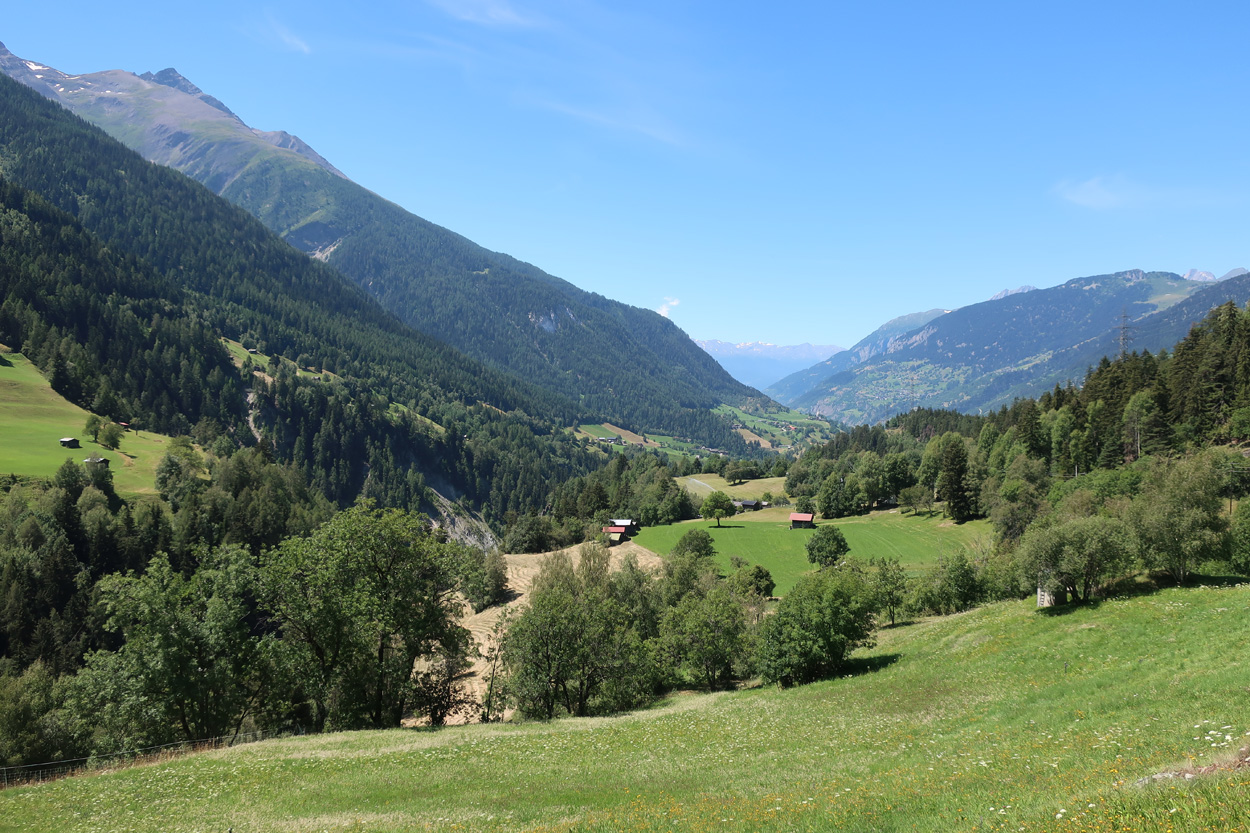 Heute morgen gab es um 7 Uhr ein sehr gutes Morgenessen. Um 8 Uhr startete ich dann. Anfänglich konnte ich noch ein paar Kilometer abseits der Hauptstraße fahren. Danach musste ich jedoch bis zur Passhöhe die stark befahrene Hauptstraße nehmen. Da es heute Werktag war, hätte ich nicht mit so vielen Autos gerechnet. Um 10 Uhr erreichte ich dann die Passhöhe auf 2162m. Hier konnte ich dann auf einer schönen Bike Route nach Ulrichen ins Goms hinunterfahren. Von Ulrichen aus ging es dann auf dem Radweg bis nach Ernen. In Ernen versuchte ich dann noch eine Variante mit einem Wasserkanalweg. So wahnsinnig der Hammer war dieser Weg jedoch nicht. Danach nahm ich eine direkte Route über die Siedlung Hockmatte nach Grengiols. Auch von Grengiols bis Naters konnte ich alles abseits der Hauptstraße fahren. Da meine Veloschuhe vorne ein Loch hatten und mein Reifen auch einen Schranz hatte, suchte ich dann in Naters ein Bike Laden auf. Danach ging ich hinüber nach Brig wo ich noch gewisse Sachen bei meinem Bruder in der Wohnung deponierte. In Brig begann dann der lange Aufstieg durch das Nanztal zum Gebidumpass. Um 18:30 Uhr erreichte ich dann die Passhöhe auf 2202 Metern. Hier bestaunte ich noch das Bergpanorama und drückte ein paar Fotos. Danach ging es auf einer Bike Route und später auf dem Kapellenweg hinunter nach Visperterminen. Hier bezog ich dann gegen 19:30 Uhr das Hotel. Eigentlich hätte ich die Herberge in Gspon nehmen wollen, doch leider war diese ausgebucht.