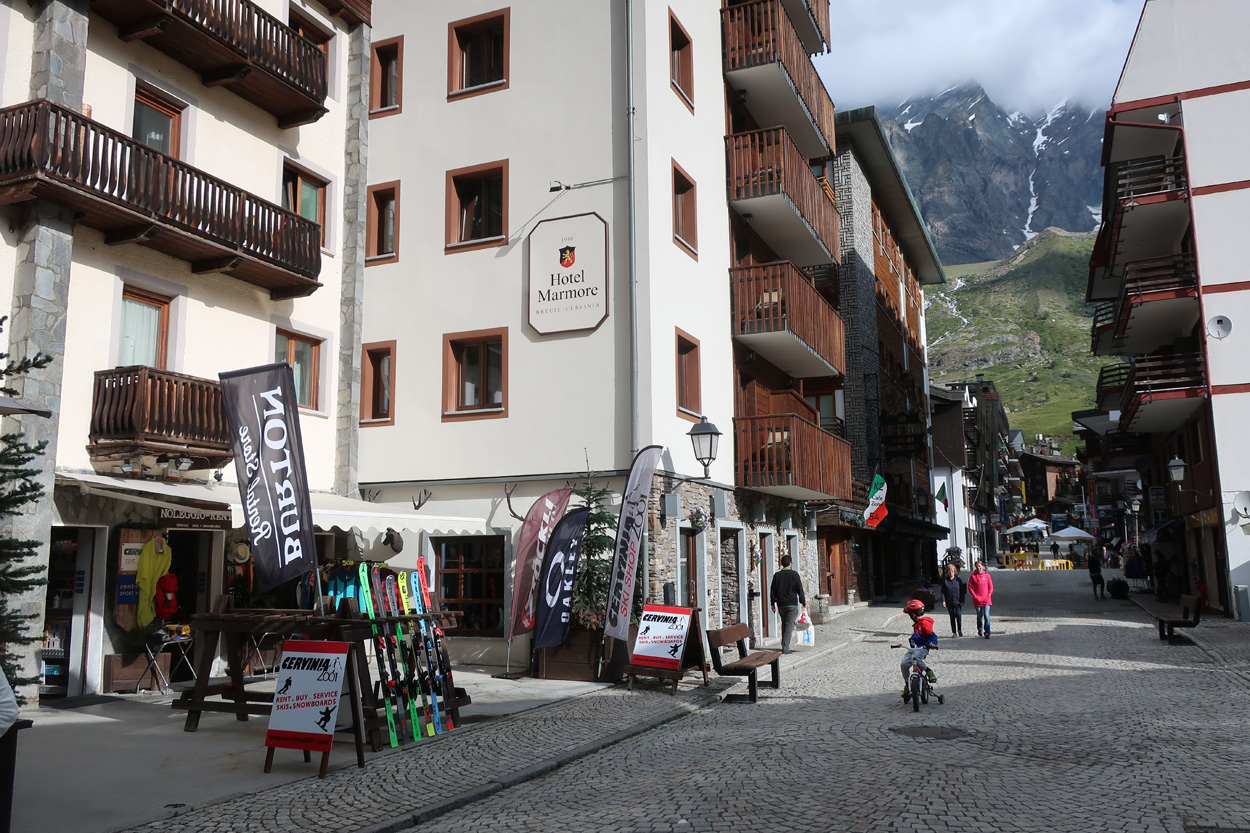 Start vor dem Hotel mit einer kurzen Abfahrt nach Breuil-Cervina