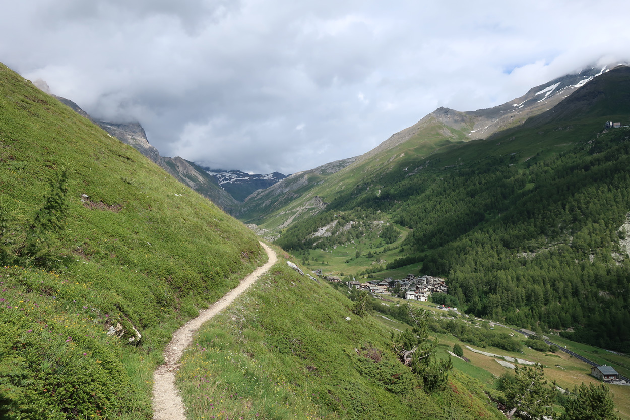 Sentier du Balcon oberhalb von Val d' Isère mit Blick auf le Fornet