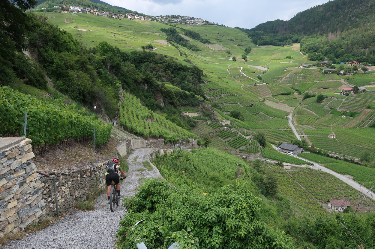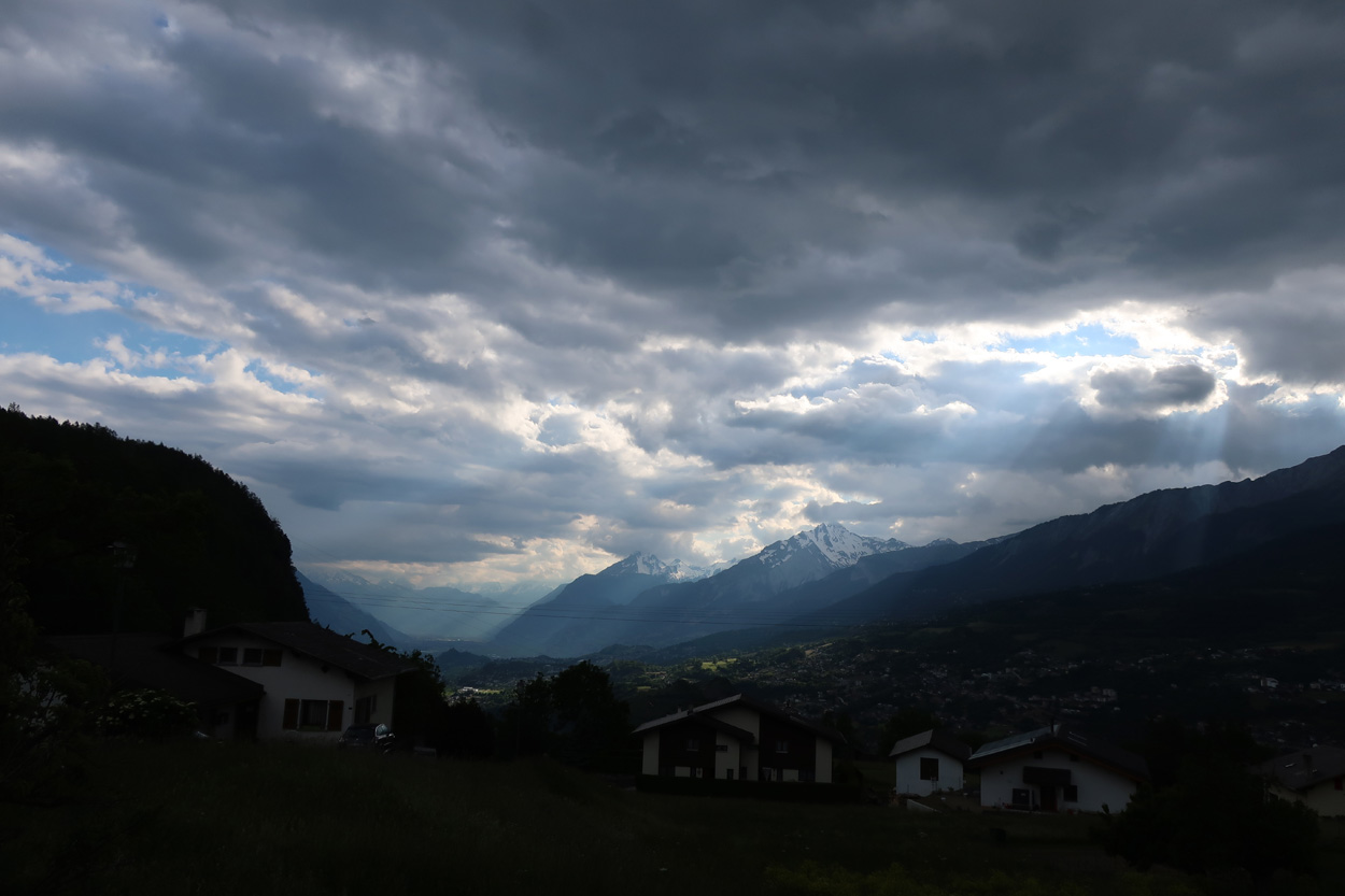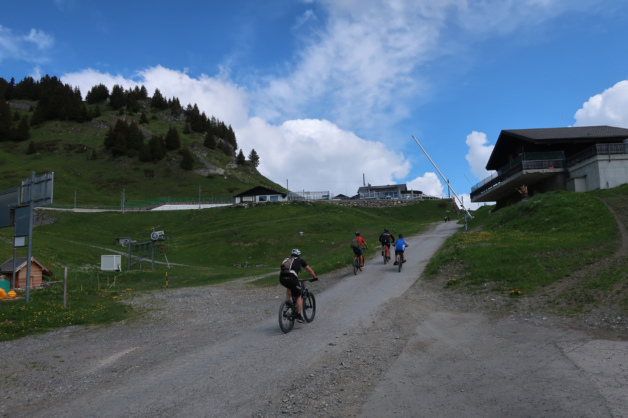Heute Morgen gab es um 7.30Uhr das Morgenessen. Um 8.30Uhr starteten wir dann. Zuerst ging es auf der Hauptstrasse zum Col du Pillon hinauf. Nach etwa 40min war dann die Passhöhe auf 1550m erreicht. Nach einer kurzen Abfahrt teilweise auf einem Bikeweg erreichten wir dann Les Diablerets. Dort kauften wir dann noch kurz Proviant. Danach ging es auf der Bikeroute zum Col de Bretaye wo wir um 11.30Uhr waren. Da die Bahn wegen der Corona Kriese noch nicht in Betrieb war, war hier oben auf 1800m noch nicht wahnsinnig viel Los. Auf der Bikeroute ging es dann mehr oder weniger auf der Höhe weiter zum Skigebiet Restaurant les Chaux. Dazwischen gab es ein Paar schöne Alpsiedlungen zu bestaunen. Vom Les Chaux aus nahmen wir dann einen tollen Trail hinunter zur Alp La Mérine. Danach folgten wir dann wieder der offiziellen Bikeroute zur Alp Solalex. Dort waren wir um 12.45Uhr. Die beiden Restaurants waren ordentlich besucht und hatten im innern keinen Platz mehr. Darum assen wir dann in der Nähe einen Teil unseres Provinates. Danach ging es auf der teilweise steilen Fahrstrasse zur Alp Anzeinde. Dort kehrten wir dann um 14Uhr in der Hütte kurz ein. Dann ging es noch fahrend bis zum Pas de Cheville auf der Grenze zum Kanton Wallis auf 2037m. Im Abstieg nach Derborence mussten wir dann etwa 30min oder 2/3 der Strecke Laufen. Um 15.45Uhr erreichten wir dann in Derborence wieder die Strasse. Hier machten wir uns dann Gedanken über das Tagesziel. Wir buchten dann ein Hotel in Lens. Nun mussten wir noch etwa 35km und 700Höhenmeter zurücklegen. Zuerst fuhren wir auf der imposanten Strasse mit den vielen kleinen Tunnels nach Aven. In der Nähe von Contey erreichten wir dann den Tiefsten Punkt auf 540m. Durch die Rebberge ging es dann oberhalb Sion weiter zur Bisse de Claveau. Auf der wunderschönen Bisse de Claveau radelten wir dann bis zu dessen Ende bei P.691. Hier folgte dann noch der Schlussaufstieg nach Lens auf 1120m. Um 18.45Uhr erreichten wir dann die Gebuchte Unterkunft mitten auf dem Dorfplatz. Im Hauseigenen Restaurant konnten wir dann noch ein gutes Abendessen geniessen.
