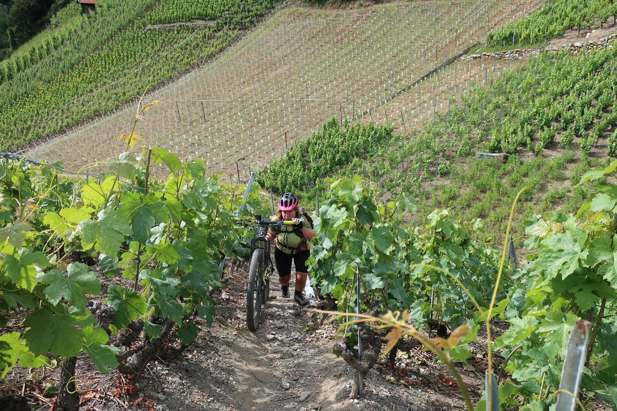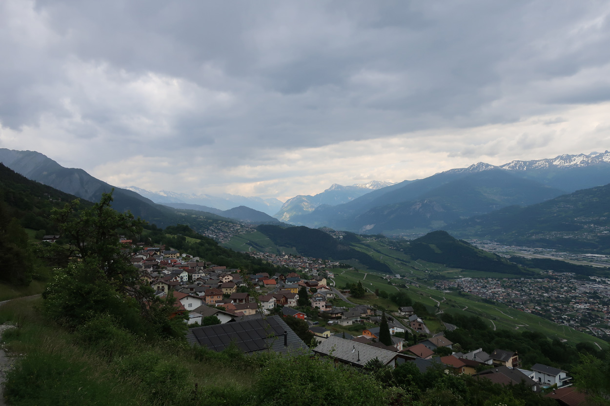 vor dem Tagesziel Lens, Blick in Rhônetal Richtung Sion