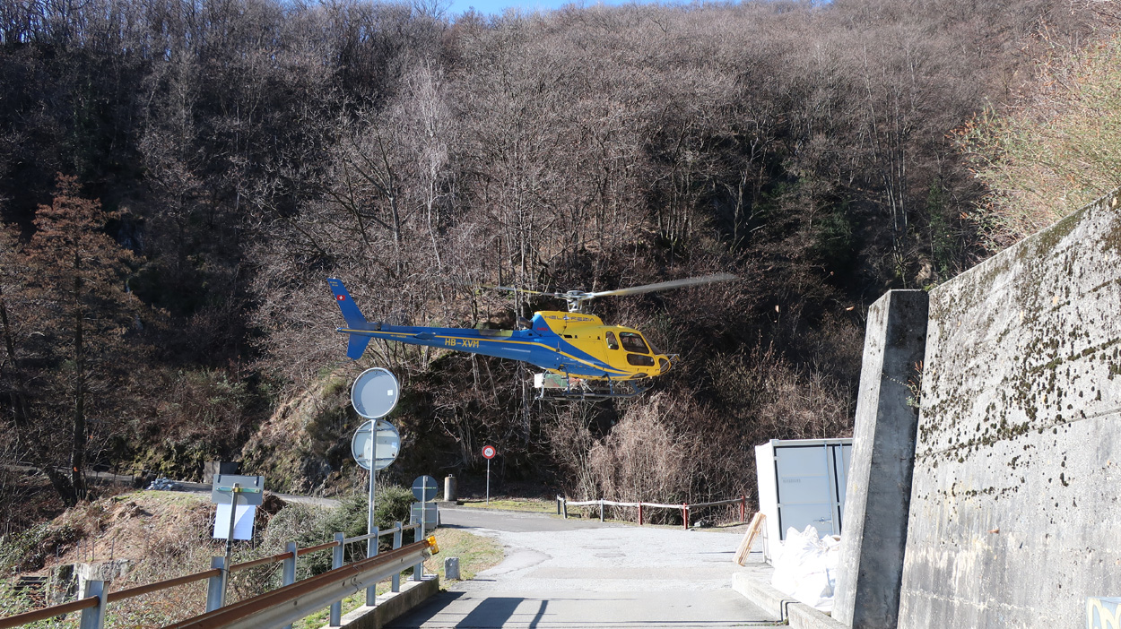 Halt wegen eines Helikopters auf der Strasse von Ronco nach Brissago im Valle di