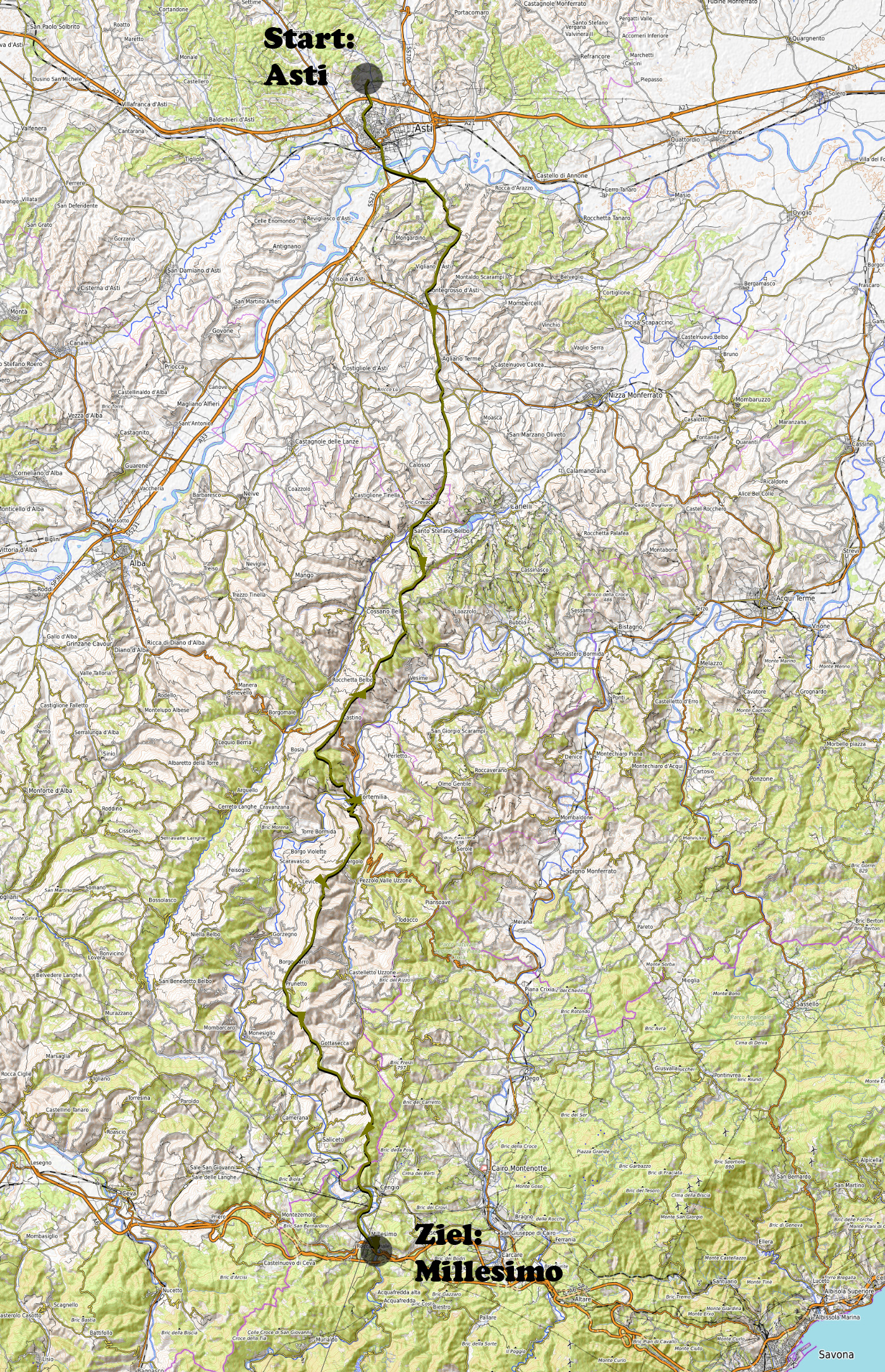 Strecke: Asti-
