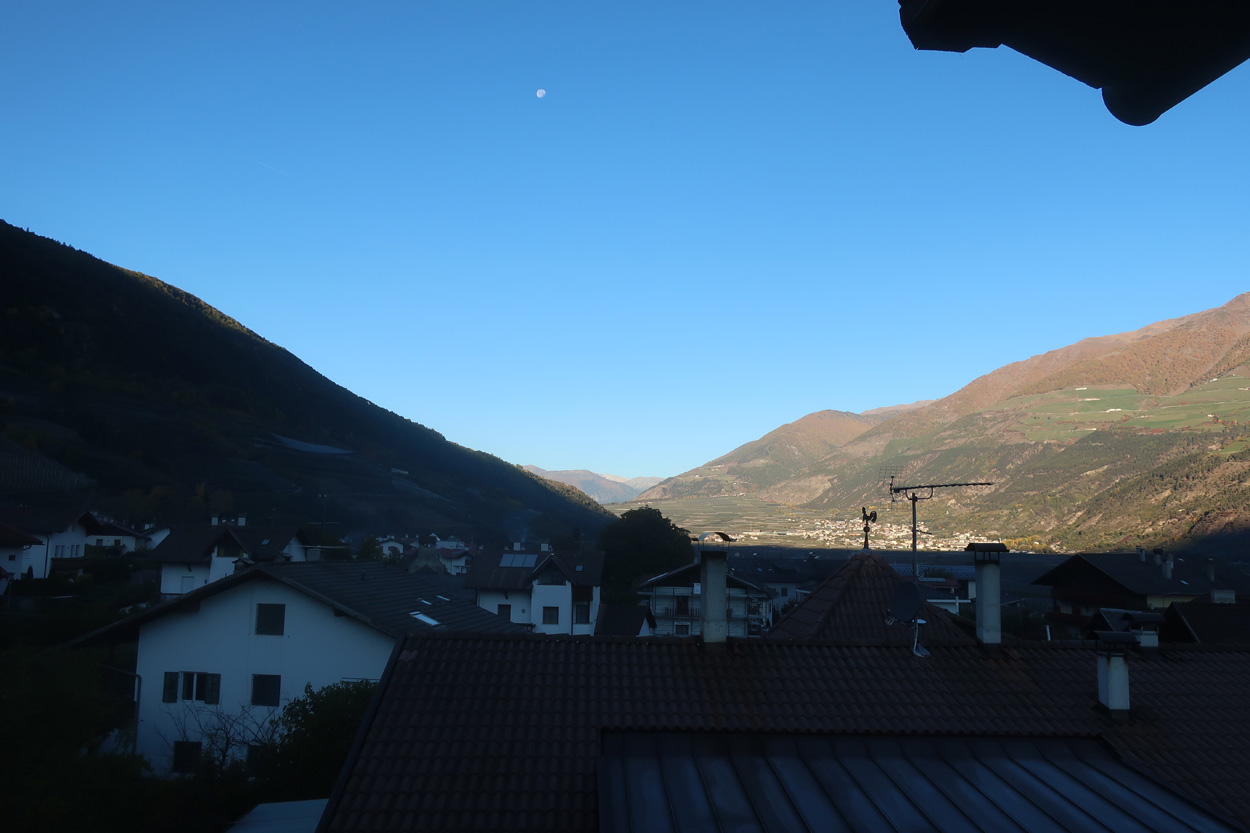 Blick aus dem Hotelzimmer das Vinschgau Hinauf nach Schlanders
