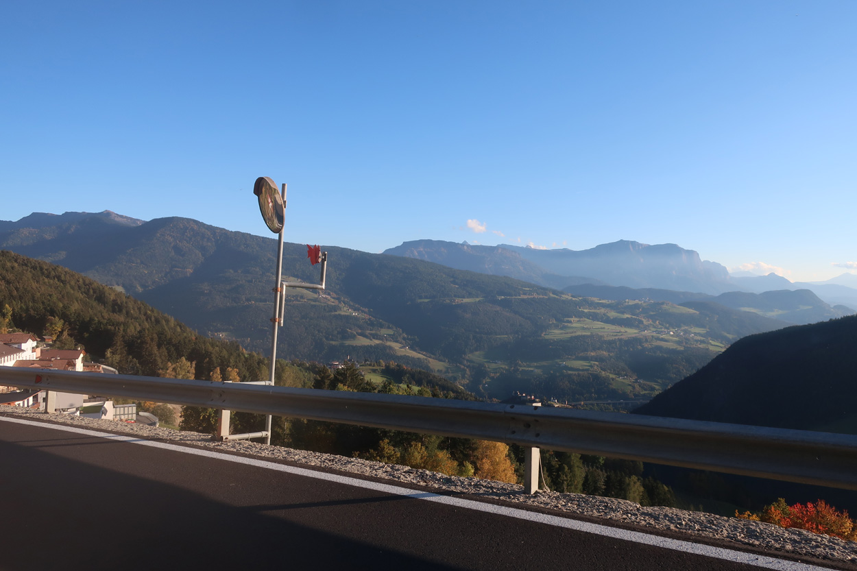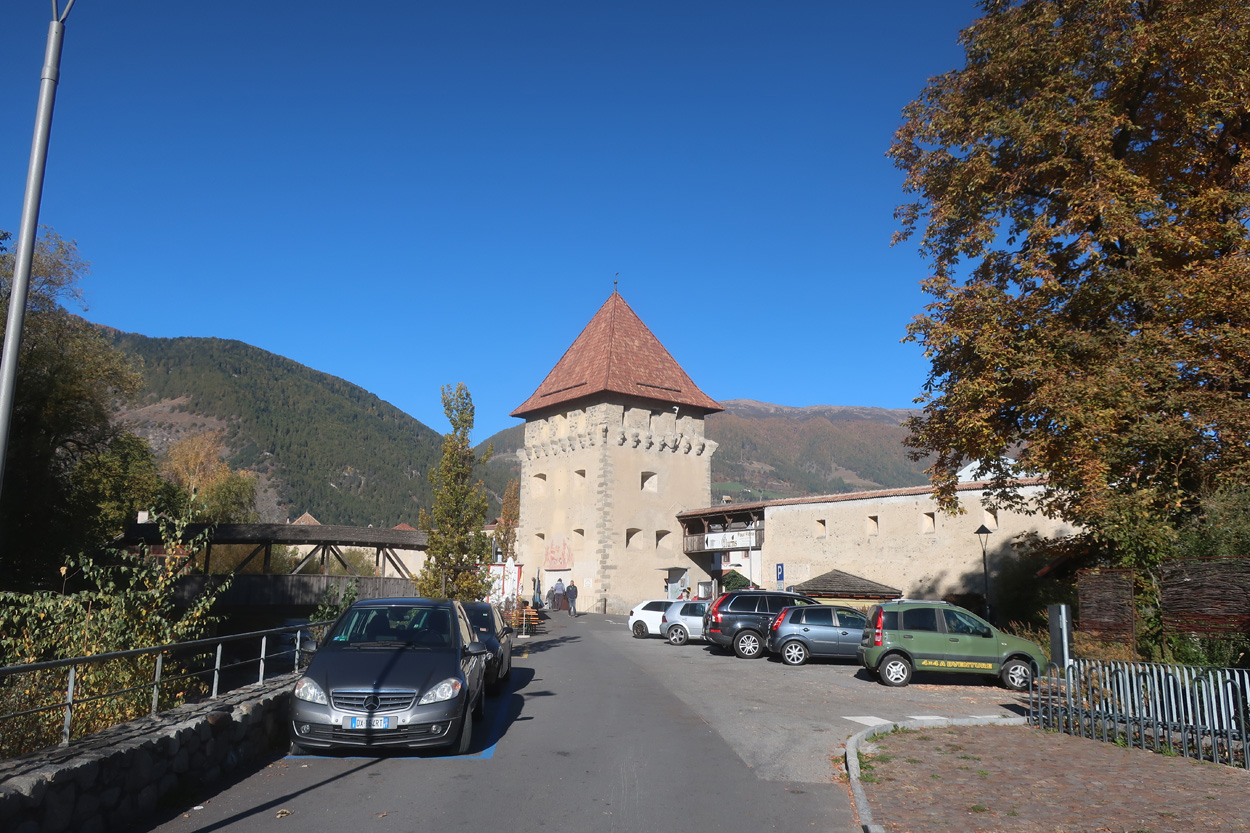 Kastanienbäume. In Feldthurns kaufte ich dann noch Treibstoff und checkte dann