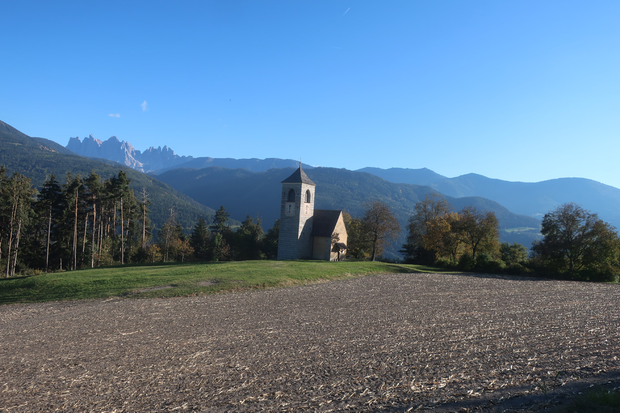 Kapelle bei Tötschling mit dem Peitlerkofel im