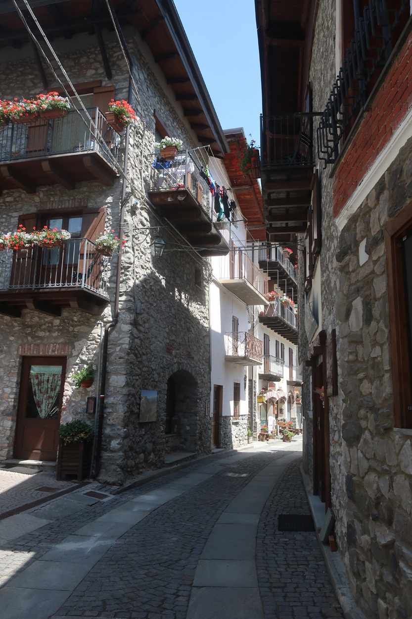 Heute Morgen Heute Morgen startete ich um 8.45 Uhr. Nach dem kauf von Saft ging es auf der Hauptstraße talabwärts bis zum nächsten Dorf Vernante. Dort folgte dann ein gut 500Höhenmeter umfassender Aufstieg zum Colla Prarosso auf 1331m. Dieses Pässli erreichte ich kurz nach 10 Uhr. Hier ging es dann über Roaschia hinunter nach Valdieri. Hier kaufte ich dann in einer Apotheke noch etwas Salbe für den Arsch, der wegen der hohen Luftfeuchte und den warmen Temperaturen etwas zu schmerzen begann. Von Valdieri nahm ich dann das kleine, 600 Höhenmeter umfassende Strassenpässli über das Santuario della Maria Colletto hinüber ins Valle Stura. Im Valle Stura folgte ich dann 25km auf der Veloroute im Talgrund talaufwärts bis nach Sambucco. Hier machte ich dann im Schönen Restaurant welches zur Osteria della Pace gehört gut eine Stunde Mittagspause. Danach folgte dann der gut 1500 Höhenmeter umfassende Aufstieg über den Colle di Salsas Blancias (2470m ü M) zur Gardetta Hochebene. Für diesen Aufstieg der überwiegend auf einer Naturstrasse geschah, brauchte ich etwa 2 ½ Stunden. Hier oben ging es dann leicht abwärts zum Rifugio Gardettta auf 2335m. Beim Rifugio Gardetta wo ich kurz nach 18 Uhr war, folgte dann noch der letzte Aufstieg zum Passo della Gardetta auf 2437m wo ich dann um 18.20Uhr ankam. Auf einem Trail ging es dann hinunter zur Alp Prato Ciorliero. Der obere Teil dieser Abfahrt war hammergeil, im unteren Teil musste ich jedoch etwa 15min Laufen. Ab hier fuhr ich dann noch über den Fahrweg und ab dem Rifugio di Viviere hinunter nach Chialvetta wo ich um 19Uhr ankam. Hier hatte ich mir schon mitte Nachmittags ein Zimmer in der wunderschönen Locanda Reserviert. Hier konnte ich dann auch meine Kleider waschen lassen und danach ein gutes Abendessen genießen.