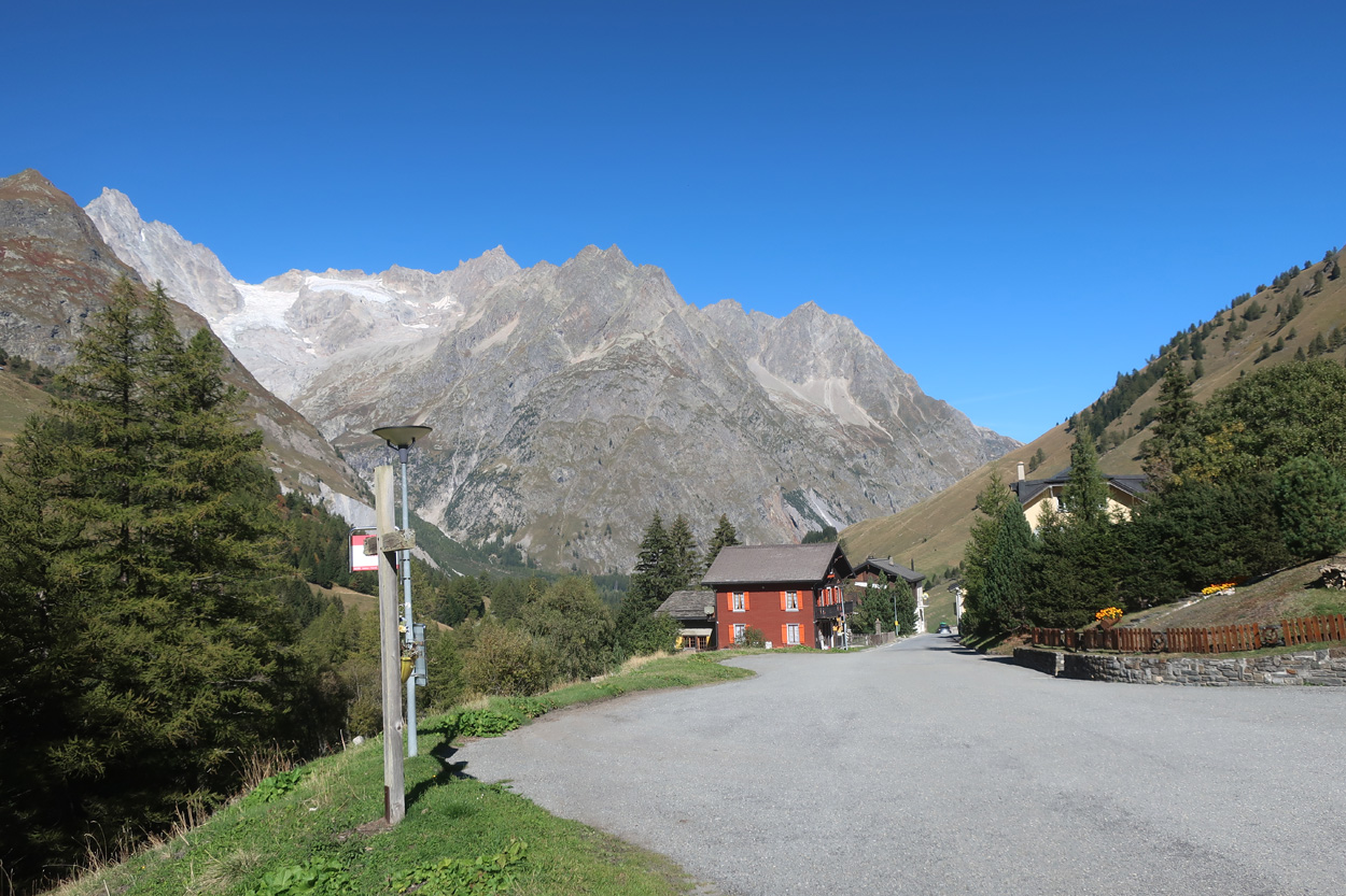 vor Entrèves, Blick auf den Mont Blanc Gipfel