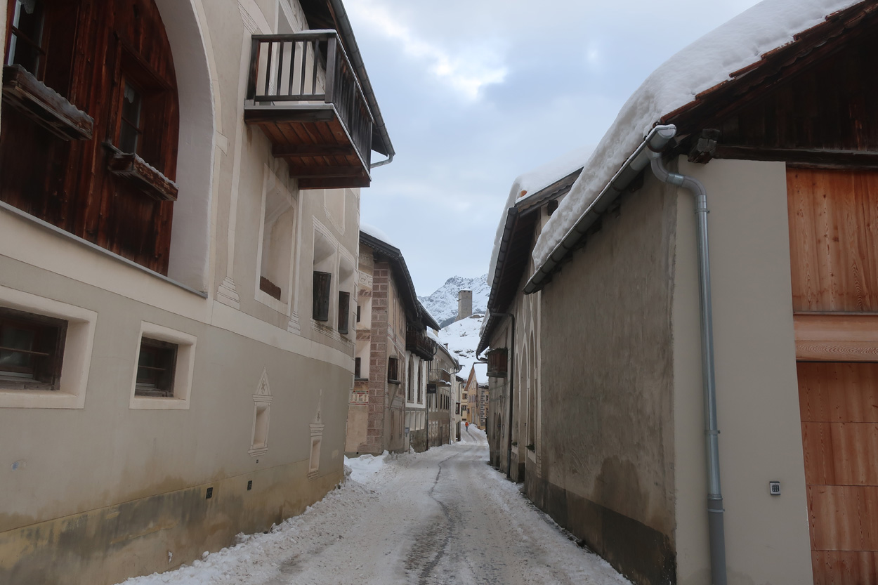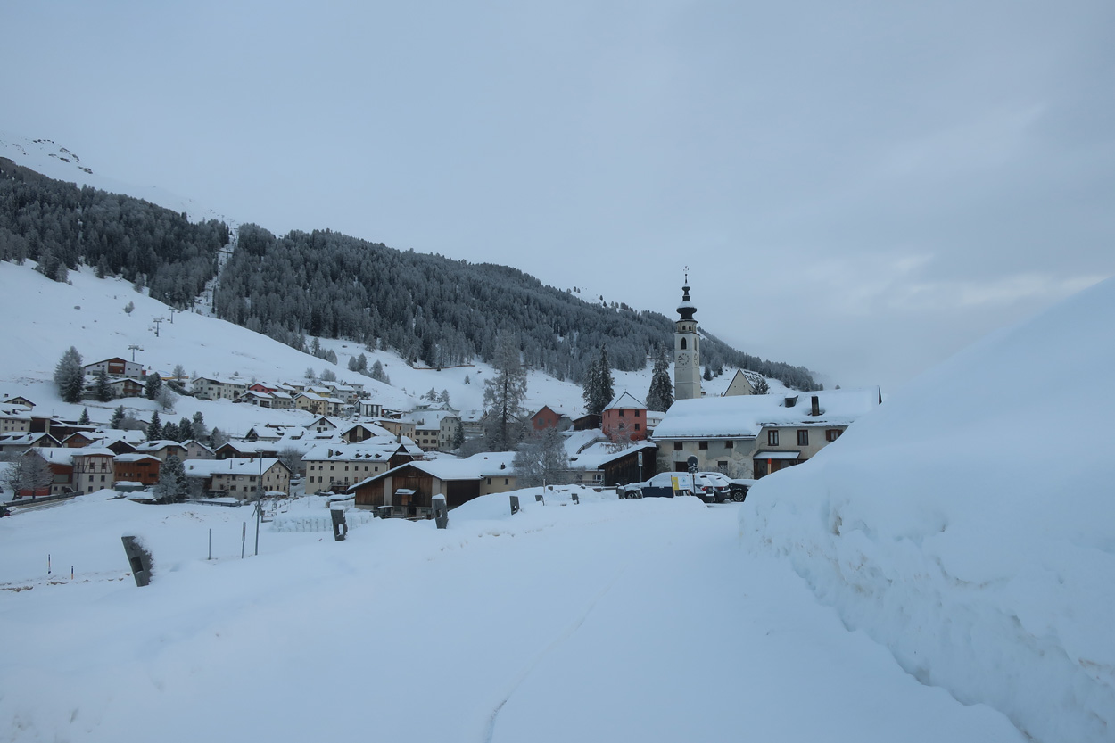 Am Ortsrand von Guarda, Blick zurück zum Weiler Bos-cha