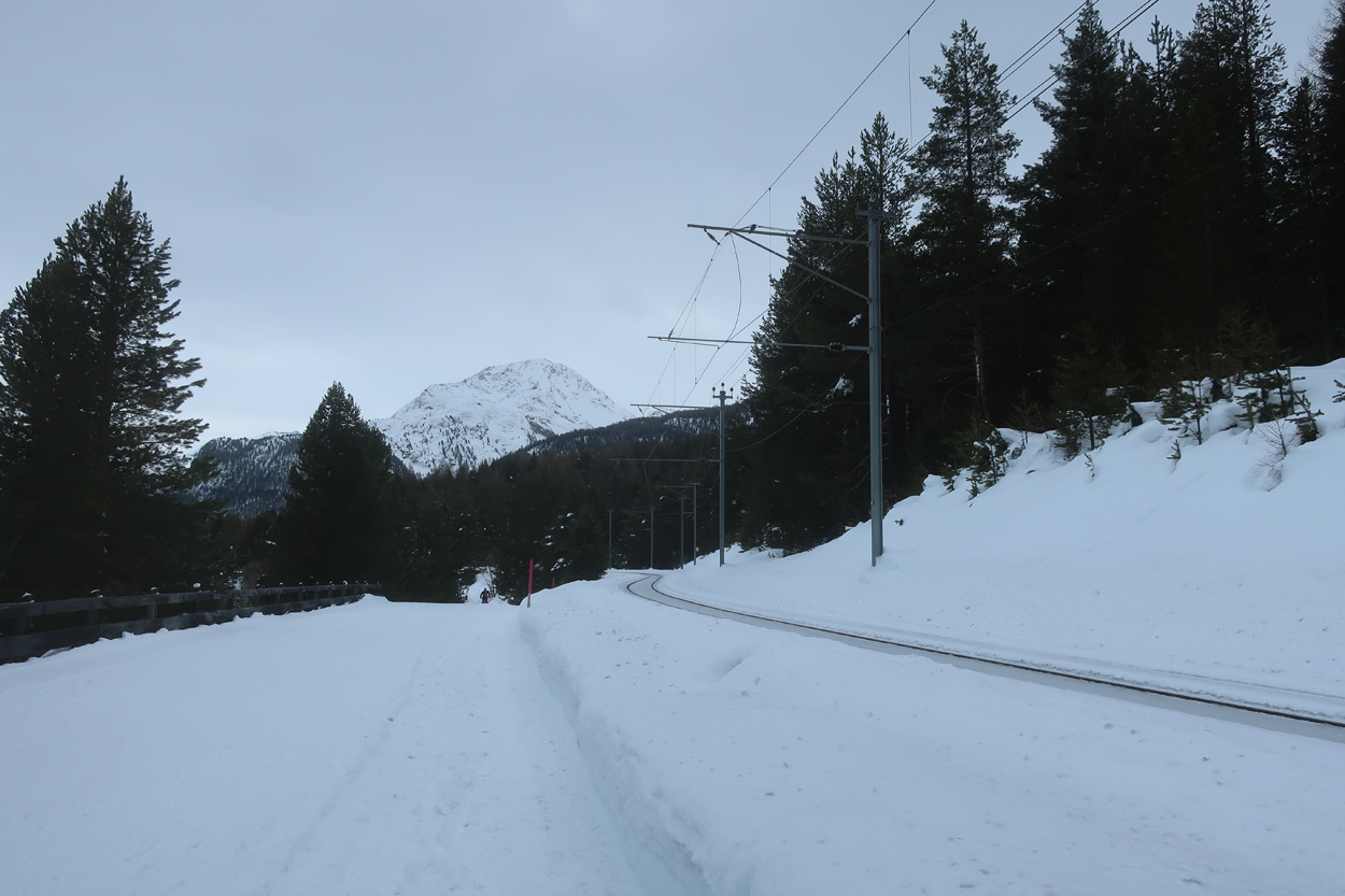 zwischen Ftan und Ardez, der Winterwanderweg war infolge des neuen Nassschnees