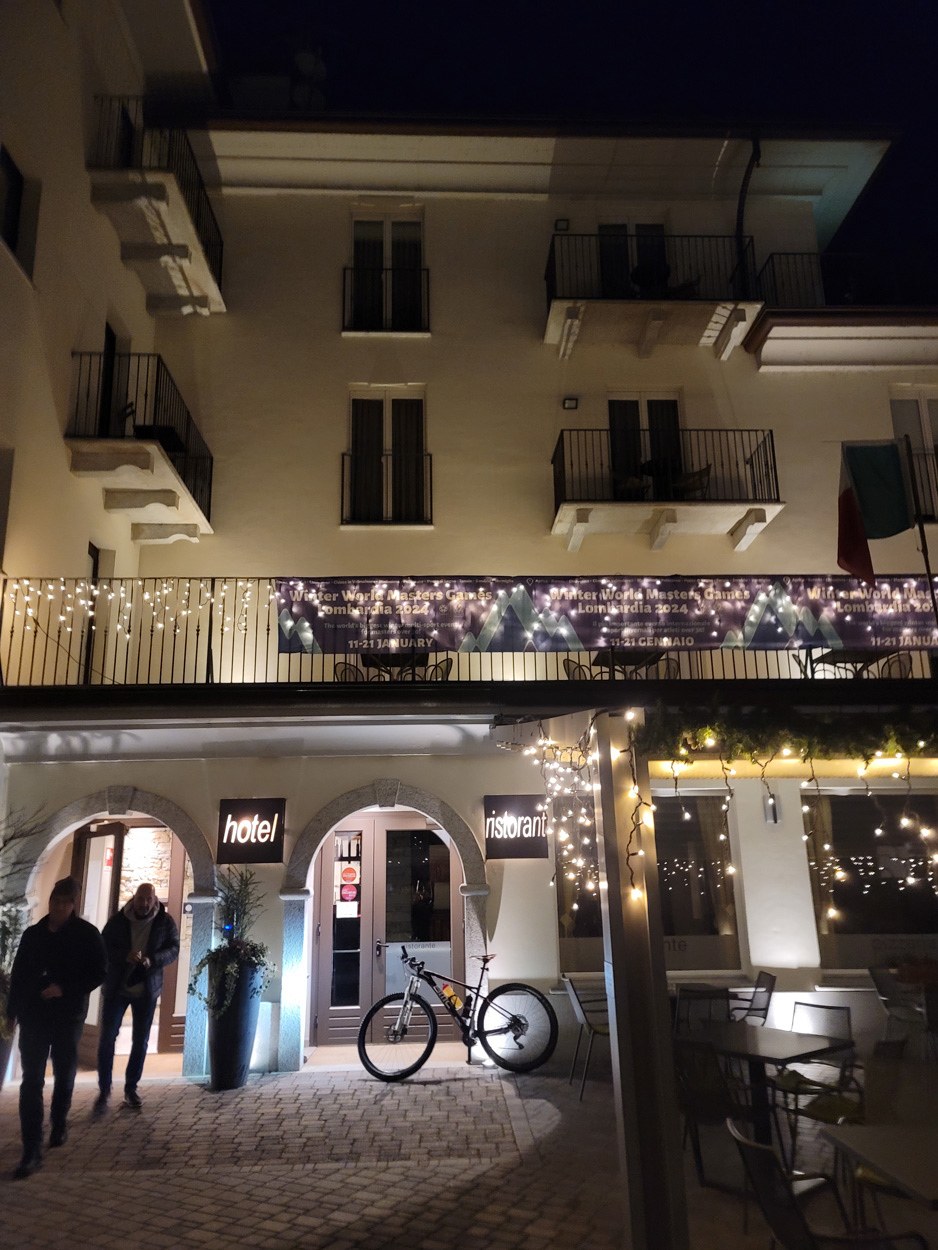 Heute morgen gab es um 7.30Uhr ein gutes Frühstücksbüffet. Etwa um 8.45Uhr startete ich dann. Leider hatte es in der Nacht etwa 5cm schweren Nassschnee gegeben, daher waren hier die Winterwanderwege sobald sie eine Steigung aufweisten zu mühsam um zu fahren. Daher nahm ich dann die gepfadete und leider auch stark gesalzene Straße nach Ardez hinunter. Von Ardez über Bos-cha nach Guarda war dann die Strasse zum Glück ohne Salz gepfadet so dass das Fahren wieder Freude machte. Nach der ebenfalls sehenswerten Ortschaft Guarda ging es dann hinunter nach Lavin auf dem Winterwanderweg. Man merkte hier dass der Niederschlag dann hauptsächlich als Regen gefallen ist. Von Lavin nach Susch ging es dann ebenfalls auf dem Winterwanderweg mit Loipe. Ab Susch ist dann der Niederschlag nur noch als Regen gefallen. Folglich war die Loipe weich und der gepfadete Winterwanderweg war stark vereist. Ich zog es dann aber vor den vereisten Fahrwanderweg zu nehmen. Ich musste hier meist ganz am Rand des Sträßchens fahren, wo der Restschnee noch etwas halt bot. Von Zernez bis Brail auf einer Länge von ca. 6km nahm ich dann die salznasse Hauptstraße. Neben dem Salz machten mir auch ein paar aggressive Deppen von Autofahrern zu schaffen die zu tief ins Gaspedal drückten und zu allem noch den Scheibenwischer mit Flüssigkeit betätigten. In Brail war ich dann froh dass es wieder einen Winterwanderweg gab wo ich ungestört weiterradeln konnte. Hier auf etwa 1600m war dann der nächtliche Niederschlag wieder als Schnee gefallen. Obwohl es sicherlich zwischen +5 und +10°C hatte, kam ich dann ab hier auf den Wanderpisten relativ gut vorwärts. Fast ausschließlich auf Wanderpisten konnte ich dann bis Sils Maria fahren wo ich dann etwa um 15.30Uhr ankam. Erwähnenswert ist hier auch noch dass meine Route in der Nähe von St. Moritz über den gefrorenen Laj da Champfèr führte. Da gemäß Wanderwegbericht der Silsersee noch nicht zum Begehen freigegeben war, nahm ich dann die Hauptstraße nach Maloja. Ebenfalls meist auf der Hauptstraße ging es dann das Bergell hinunter nach Castasegna. Auf dieser mäßig befahrenen Hauptstraße waren vorallem Italiener unterwegs. Bei den Italienischen Autofahrern merkt man, dass sie meistens schon mehr Anstand haben als die Schweizer. In Castasegna überquerte ich dann um 16.50Uhr die Staatsgrenze zu Italien und montierte danach noch das Licht am Velo. Ab hier konnte ich dann die restlichen 10km ohne Verkehr auf einem schönen Veloweg zurücklegen. Etwa um 17.40Uhr erreichte ich dann das wunderschöne Städtchen Chiavenna. Hier schaute ich mich dann noch wegen Unterkünften um und nahm dann das Hotel San Lorenzo welches auch eine gute Pizzeria hatte.