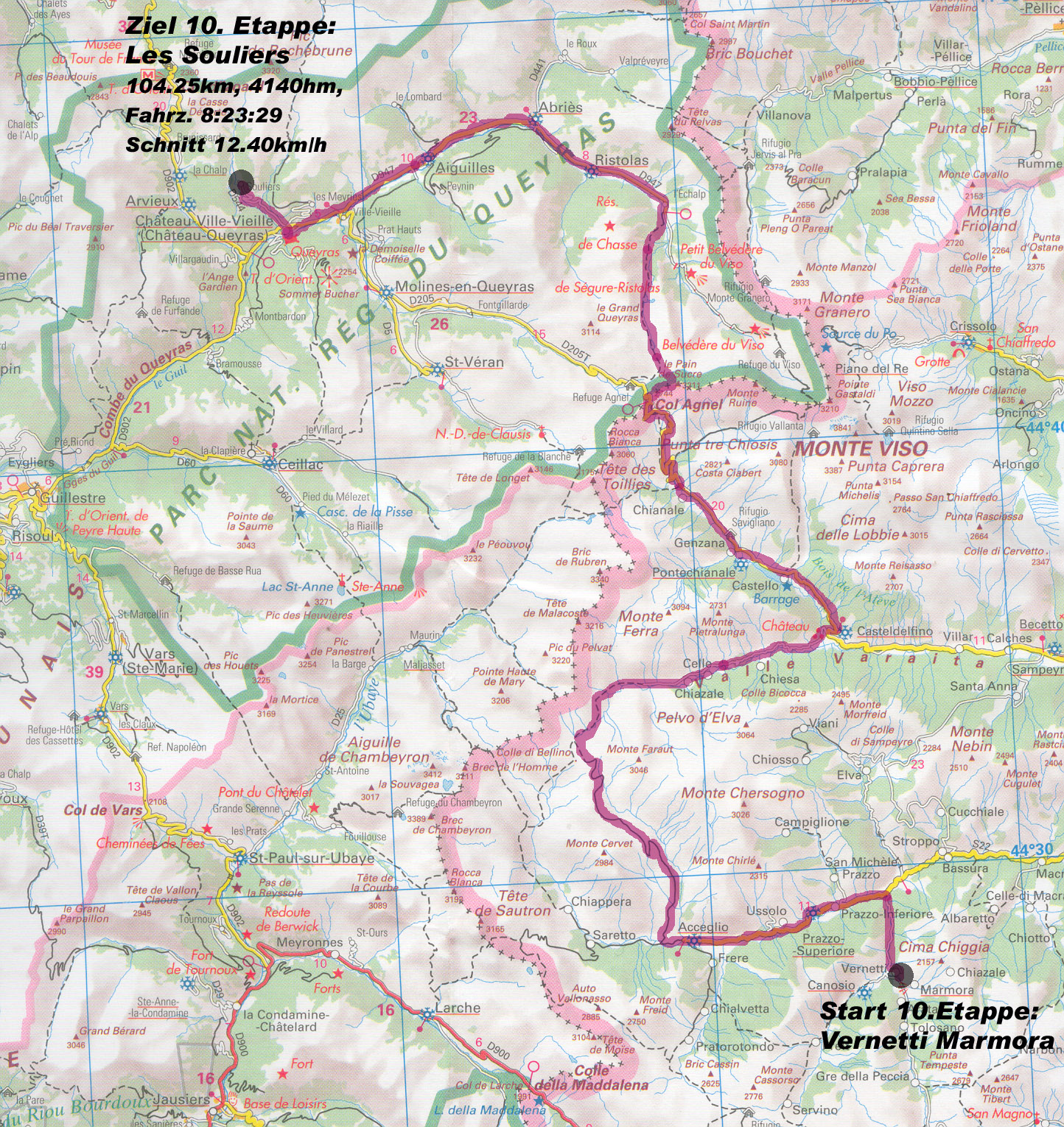 Marmora- Monte Bellino- Casteldelfino- Colle Agnel- Col Vieux- Abries- Château
