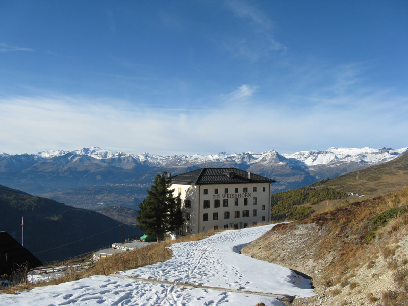 Hotel Weisshorn 2337m, die knapp 5 cm Schnee störten noch nicht gross