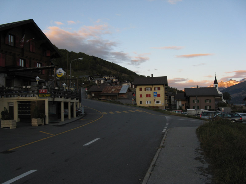 Meine Schwester nahm in Chandolin die Strasse und verliess mich. Nach etwa 45min bin ich dann um 17.45 Uhr im Talgrund im Pfynwald angekommen. Dann fuhr ich auf dem direktesten Weg nach Turtmann. Dort dunkelte es dann ein, als ich die letzten 600hm nach Eischoll in Angriff nahm. In Eischoll hatte ich dann noch das Glück ein Appartmentzimmer im weit und breit einzig geöffneten Hotel zu bekommen.