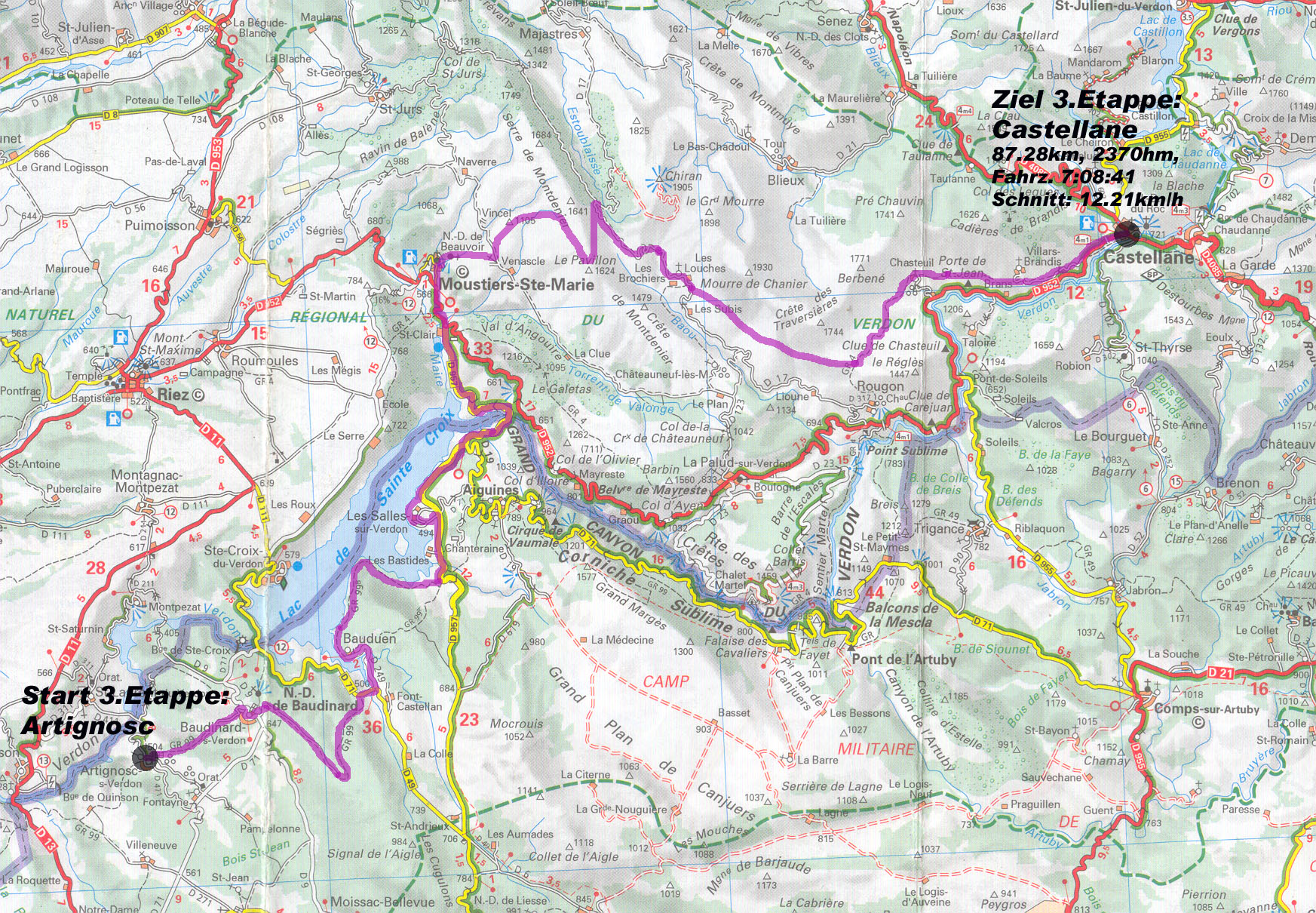 Bauduen- Moustiers Ste Marie- Römerweg- GR4- Castellane 87.28km, 2370hm