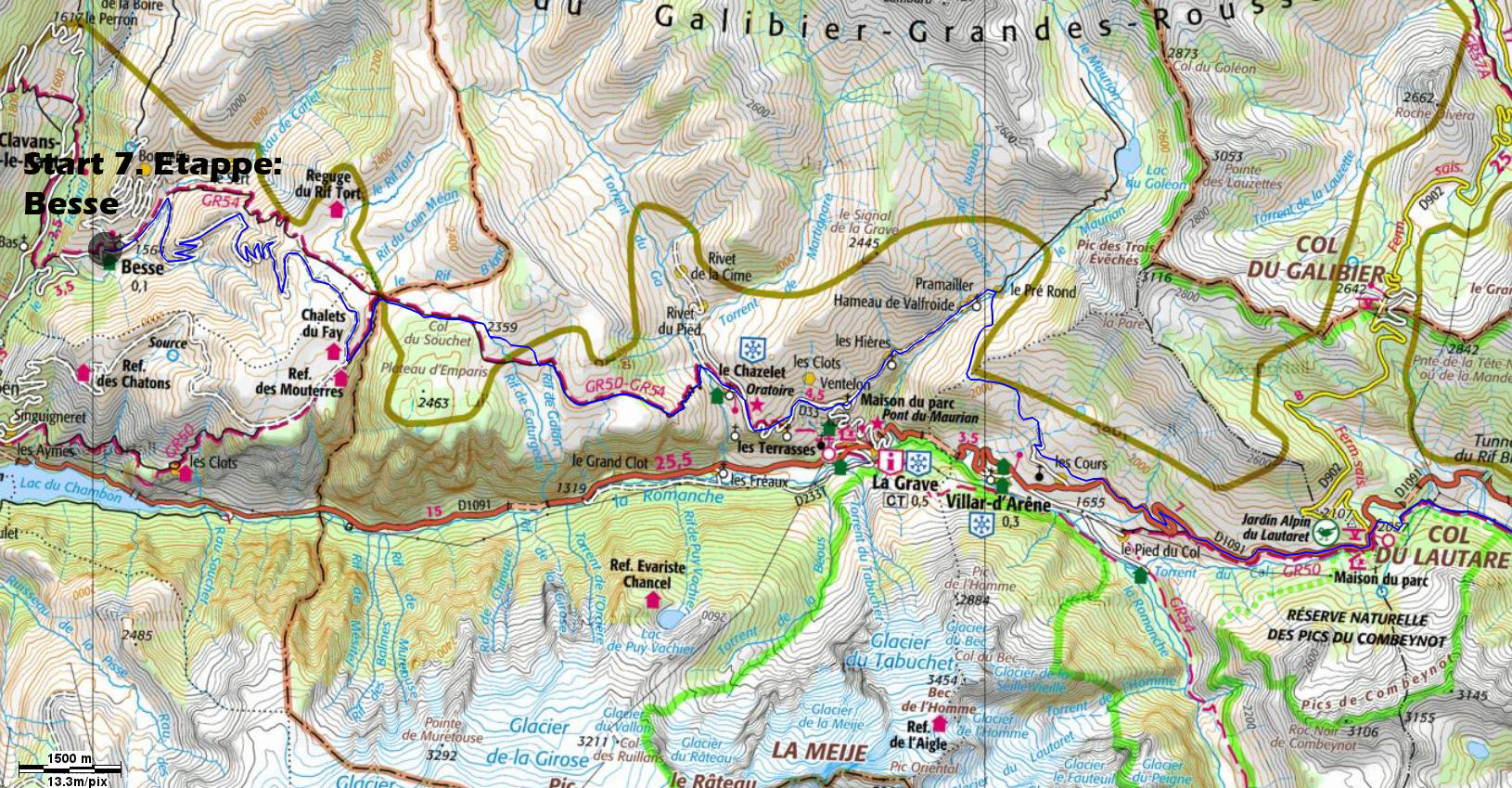 Besse- Col St. Gorges- le Chazelet- Col du Lautaret- Chemin du Roy- Col de