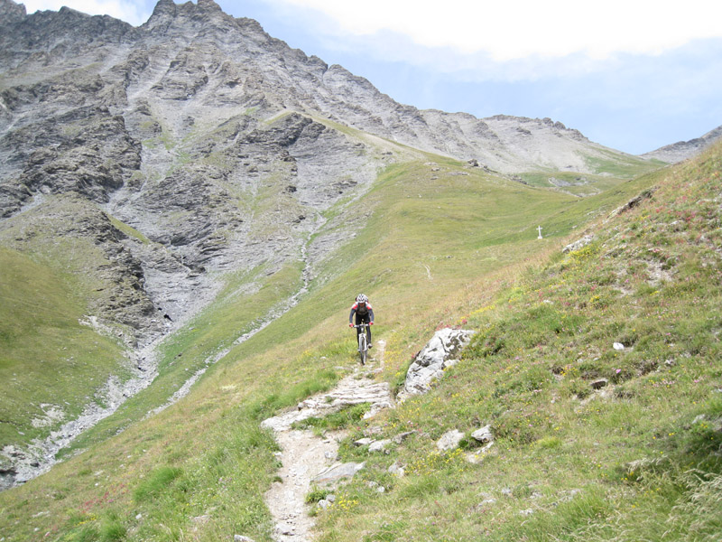 Anspruchsvoller Trail im oberen Bereich der Abfahrt