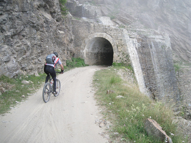 Jafferaustrasse nach Salbertrand, bei der Abrissstelle verläuft die Strasse in einem unbeleuchteten Tunnel
