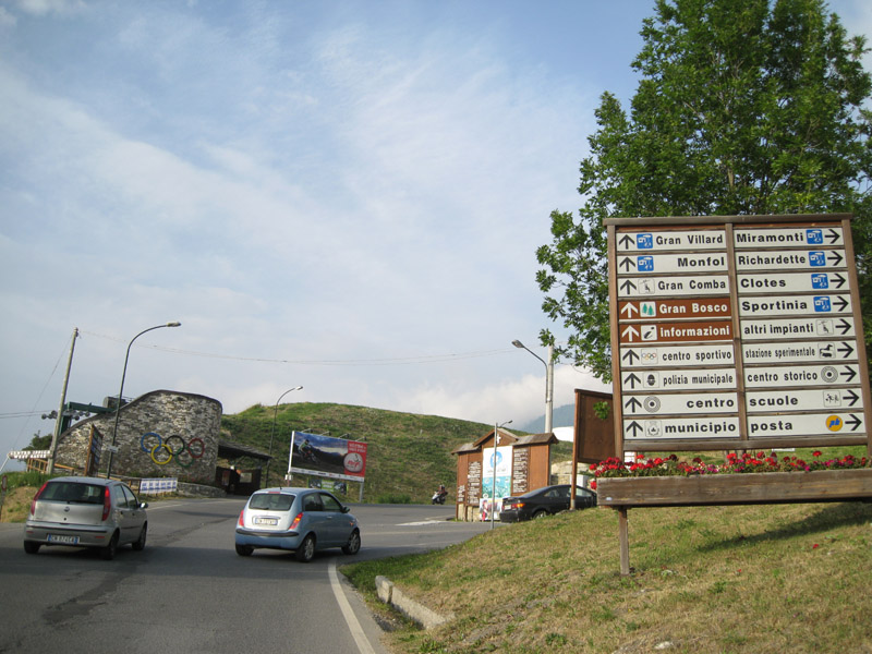Einfahrt in die Olympische Retortensiedlung Sauze d’ Oulx