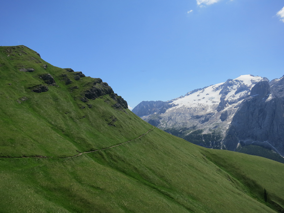Bei der Baita Belvedere, Blick zum Sellajoch