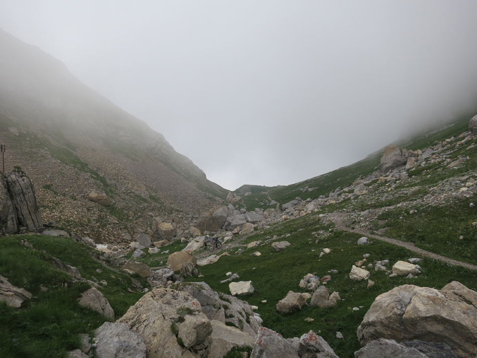 einen steilen, aber noch gut fahrbaren Skipistenweg hinauf zum Col de Varda.