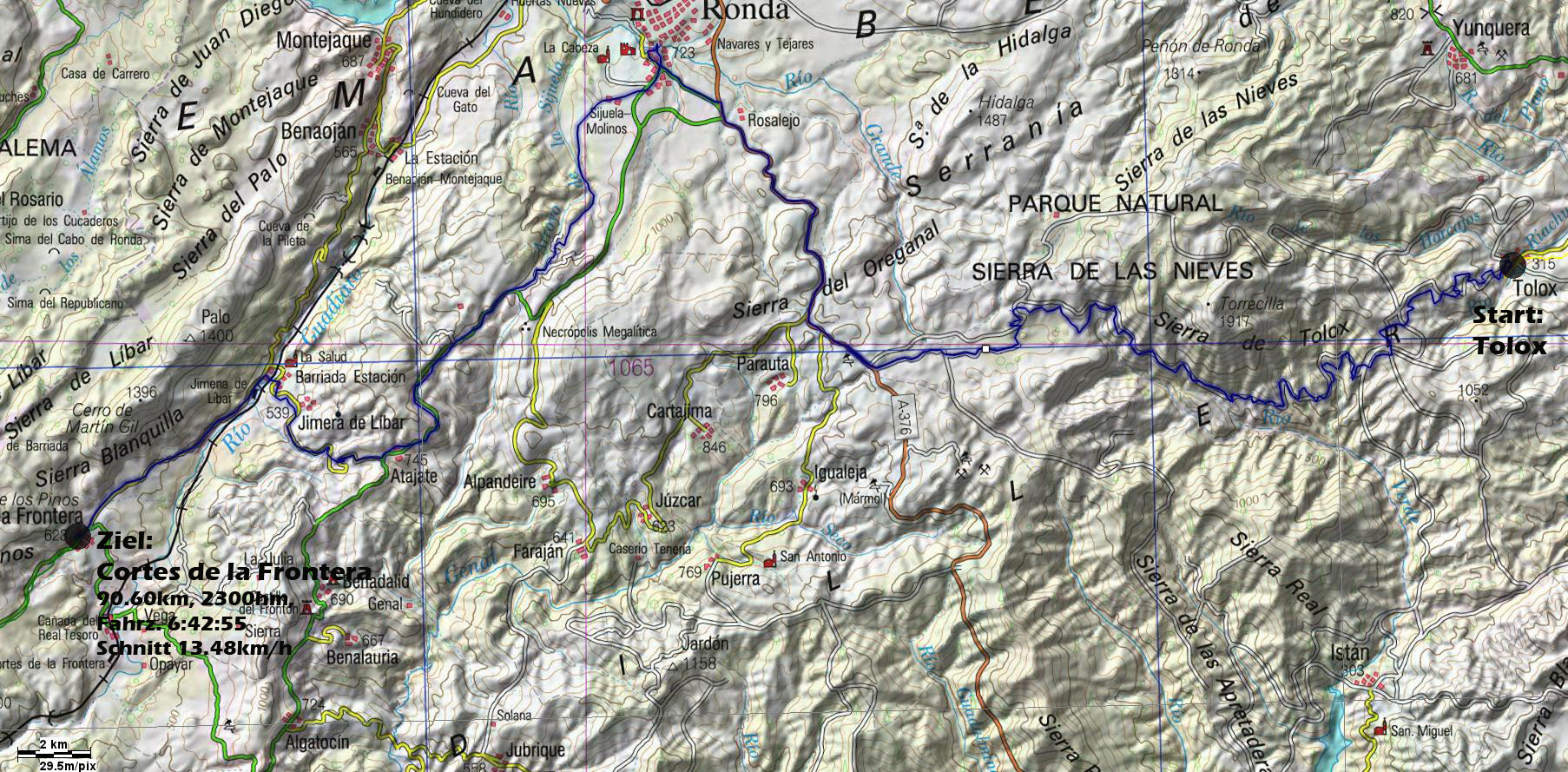 12. Etappe: Tolox- Sierra de las Nieves- Ronda- Atajate- Cortes de la Frontera 90.60km, 2300hm