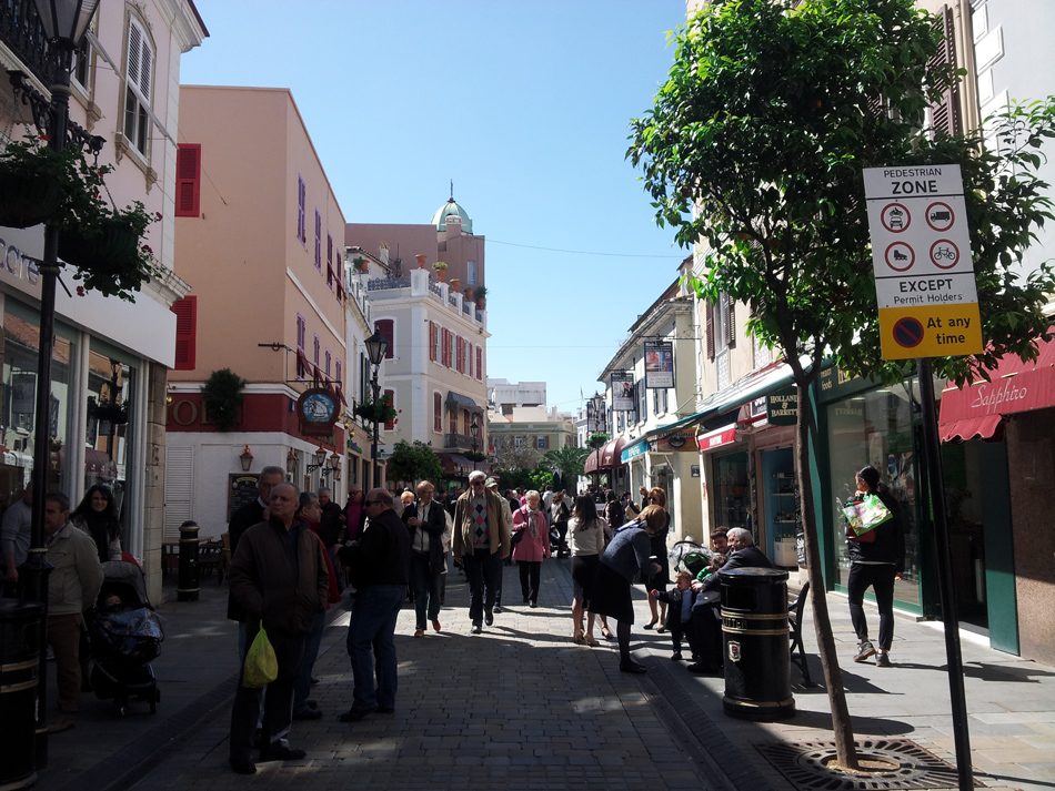 Gibraltar City, wo einige Leute auf der Strasse waren. Dann ging es zurück