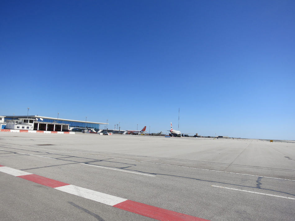 umfahren. Gleich nach der Grenzkontrolle fährt man über den Flughafen. Wir